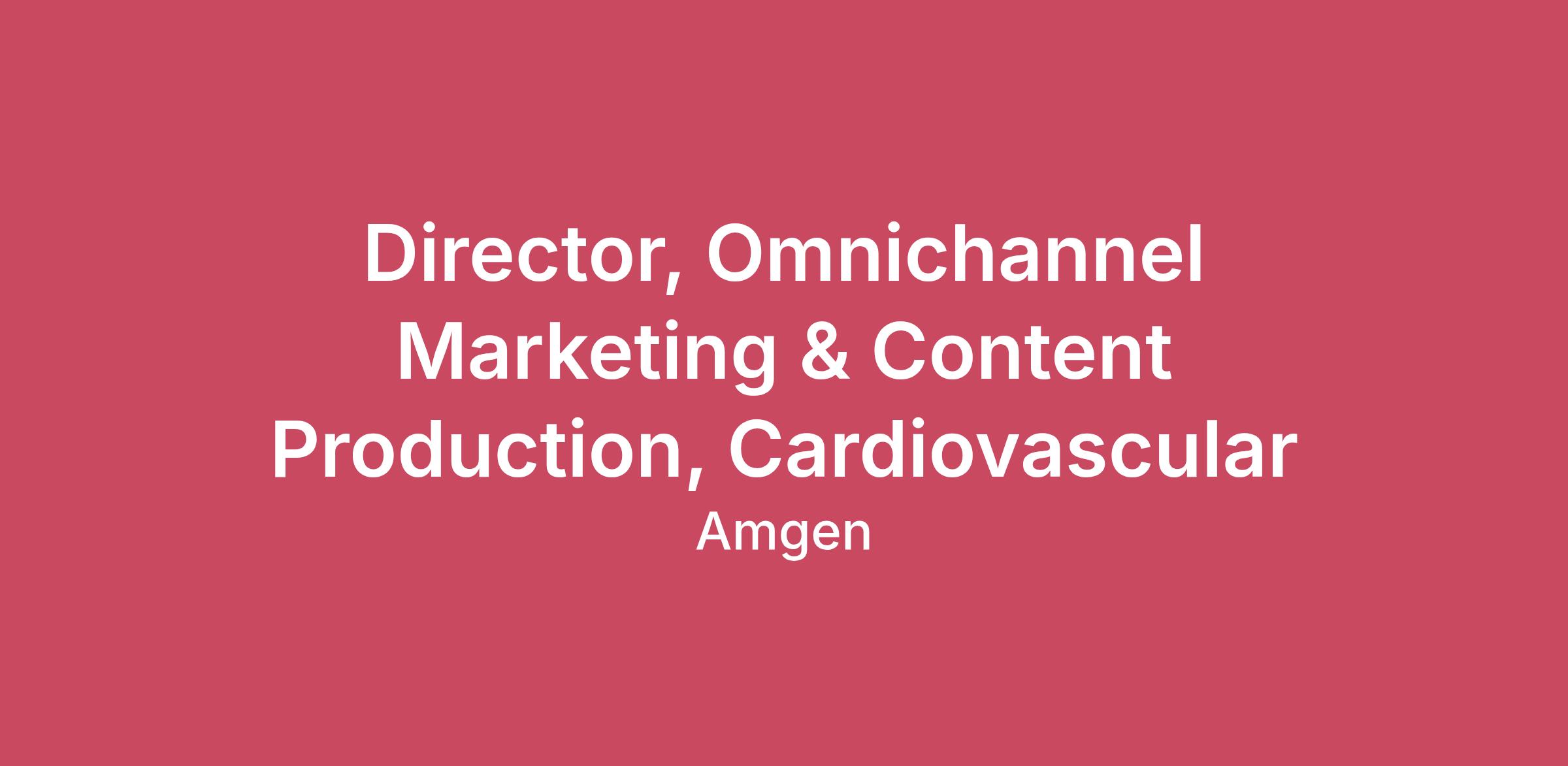Career CategoryMarketingJob DescriptionJoin Amgen’s Mission of Serving PatientsAt Amgen, if you feel like you’re part of something bigger, it’s because you are. Our shared mission—to serve patients living with serious illnesses—drives all that we do.Since 1980, we’ve helped pioneer the world of biotech in our fight against the world’s toughest diseases. With our focus on four therapeutic areas –Oncology, Inflammation, General Medicine, and Rare Disease– we reach millions of patients each year. Amgen is advancing a broad and deep pipeline of medicines to treat cancer, heart disease, inflammatory conditions, rare diseases, and obesity and obesity-related conditions. As a member of the Amgen team, you’ll help make a lasting impact on the lives of patients as we research, manufacture, and deliver innovative medicines to help people live longer, fuller happier lives.Our award-winning culture is collaborative, innovative, and science based. If you have a passion for challenges and the opportunities that lay within them, you’ll thrive as part of the Amgen team. Join us and transform the lives of patients while transforming your career.Director, Omnichannel Marketing & Content Production, CardiovascularWhat you will doLet’s do this. Let’s change the world. In this vital role the Director, Omnichannel Marketing & Content Production (Cardiovascular – Repatha) will lead the end-to-end omnichannel engagement strategy, content ecosystem, and production operations across non-personal channels. This leader will be responsible for delivering high-impact, data-driven, and scalable customer experiences that drive behavior change among healthcare providers (HCPs) and ultimately improve patient outcomes.Reporting to the Brand Lead Executive Director, this role sits at the intersection of strategy, execution, content, and analytics, requiring a balance of visionary leadership and operational excellence.Omnichannel Strategy & EngagementLead the integrated omnichannel strategy across digital and non-personal channels in close partnership with audience leads and promotional teamsOrchestrate seamless customer journeys across web, CRM, paid media, social, and emerging channelsChampion Customer 360 strategies, enabling personalization and optimized engagement across the HCP experiencePartner with Global Commercial Capabilities and Analytics teams to design and deploy end-to-end, insights-driven campaignsContent Strategy & Production at ScaleBuild and lead a high-performing content production engine, delivering high-quality, compliant content at scaleOversee modular content strategies, enabling reuse, speed, and personalizationDrive innovation in AI-enabled content production and automation pilotsEnsure alignment of content to channel strategy, audience needs, and brand prioritiesChannel Leadership & InnovationOversee strategy and execution across key channels:Digital Media (Display, OLV, CTV)Social & Influencer/Community Engagement (in partnership with Corporate Communications)CRM & Trigger-Based Communications (Email, SMS, marketing automation)Web, SEO & Search (including emerging GEO capabilities)Continuously evaluate and pilot emerging platforms, technologies, and engagement modelsAnalytics, Measurement & OptimizationLead a holistic measurement framework across channels and campaignsPartner with Commercial Data & Analytics to generate actionable insights and performance optimization strategiesDrive test-and-learn agendas, enabling continuous improvement in ROI, engagement, and experienceScale best practices and optimization modelsCross-Functional Leadership & Operational ExcellenceLead and develop a multi-disciplinary team spanning omnichannel engagement, content production, CRM, web, and analyticsFoster a high-performance, collaborative culture focused on innovation, agility, and accountabilityPartner across key cross-functional partners including HCP/IDN Marketing, Sales, Value & Access, Corporate Communications, Digital Technology, Regulatory, Legal and Medical teamsManage agency and vendor partners to deliver best-in-class creative and executionOversee budgets and ensure efficient, ROI-driven investment decisionsWhat we expect of youWe are all different, yet we all use our unique contributions to serve patients. The leader we seek brings strategic vision, operational rigor, and a passion for innovation.Basic Qualifications:Doctorate degree and 4 years of marketing experienceORMaster’s degree and 8 years of marketing experienceORBachelor’s degree and 10 years of marketing experienceIn addition to meeting at least one of the above requirements, you must have at least 4 years experience directly managing people and/or leadership experience leading teams, projects, programs, or directing the allocation or resources. Your managerial experience may run concurrently with the required technical experience referenced abovePreferred Qualifications:8+ years of progressive commercial or marketing experience in biopharma, healthcare, or related industries3+ years of people leadership experience with demonstrated ability to build and lead high-performing teamsProven expertise in omnichannel marketing, digital strategy, and content operations at scaleExperience implementing data-driven, customer-centric engagement modelsStrong track record of leading cross-functional initiatives in matrixed organizationsExperience driving innovation (e.g., AI, personalization, automation) in marketing ecosystemsDemonstrated ability to balance strategy, execution, and operational excellenceWhat you can expect of usAs we work to develop treatments that take care of others, we also work to care for your professional and personal growth and well-being. From our competitive benefits to our collaborative culture, we’ll support your journey every step of the way.The expected annual salary range for this role in the U.S. (excluding Puerto Rico) is posted. Actual salary will vary based on several factors including