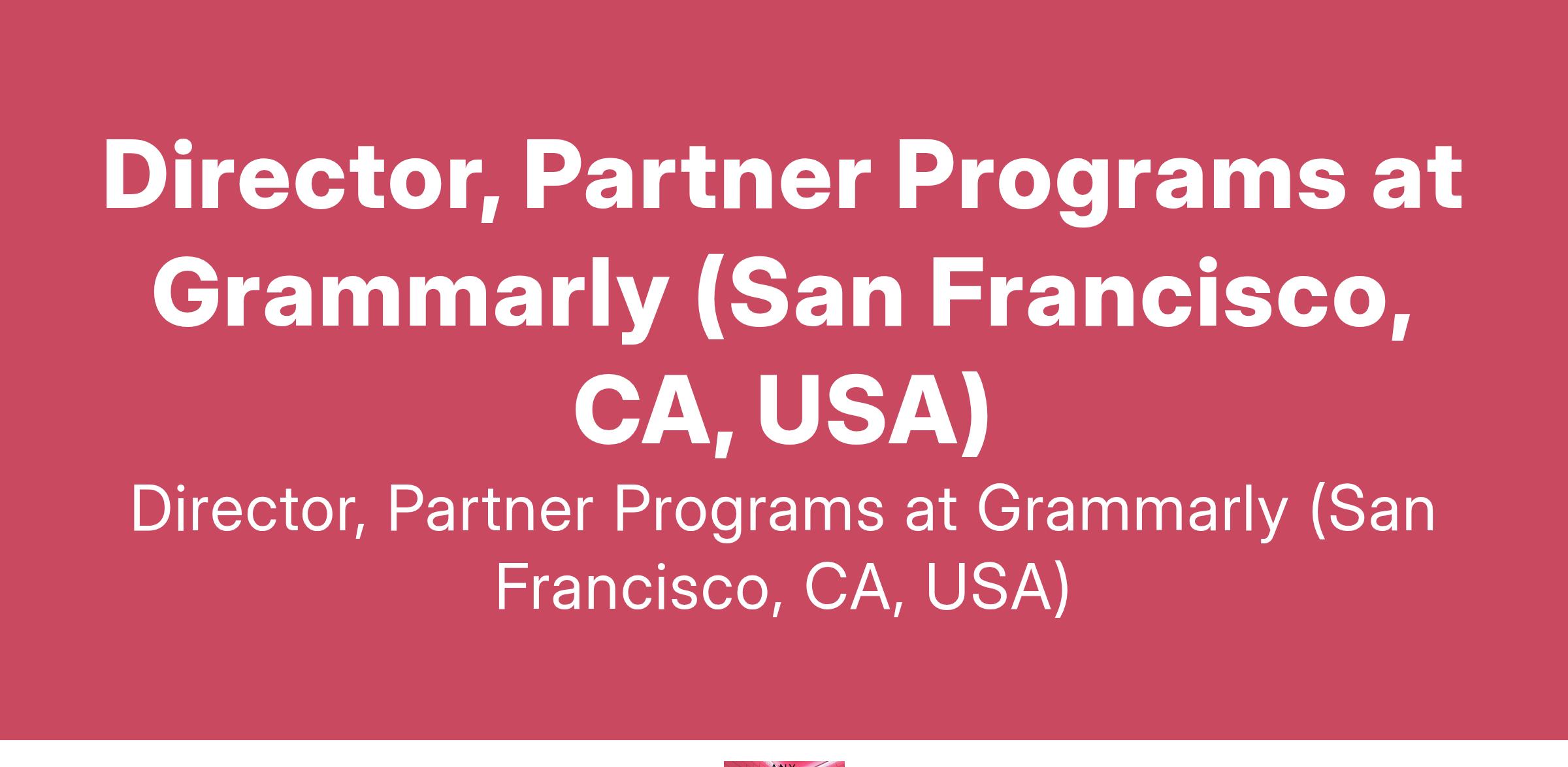 Director, Partner Programs at Grammarly (San Francisco, CA, USA)