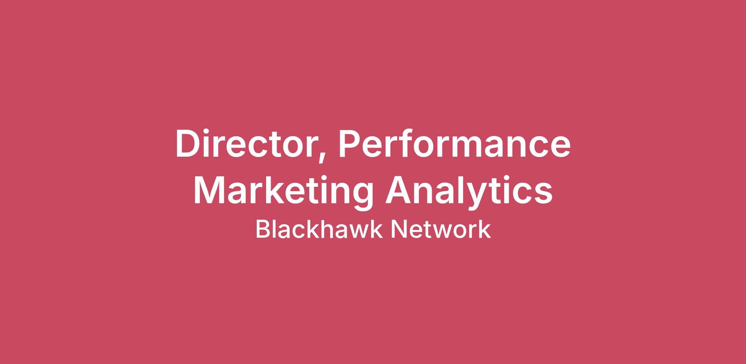 About Blackhawk Network Today, through BHN’s single global platform, businesses of all kinds can tap into the world’s largest network of branded payment solutions. BHN helps businesses grow revenue, increase loyalty, motivate and reward their teams, disburse funds and engage consumers. Branded payment solutions include the issuance and distribution of gift cards, egifts, corporate payouts and rewards, along with the technology to deliver these products in seamless, integrated ways. BHN’s network spans the globe with more than 400,000 consumer touchpoints. Learn more at BHN.com. This position may be performed remotely anywhere within the United States except for the State of Alaska, North Dakota, or South Dakota. Employees located within 50 miles of a BHN office will be considered a "Hybrid" employee and are required to come into the office 2 days per week based on office schedule. Overview We are searching for a Director, Performance Marketing Analytics to lead our Performance Marketing Analytics team in developing a high signal, scalable data driven machine for the Global Marketing organization. This role will drive change in spend management and is highly visible, hands-on and in partnership with the Sales, Marketing teams and Product and Technology teams. You will drive the optimization of marketing investments crossing multiple regions and channels to generate revenue growth. In this role, you will oversee multiple channels and will be responsible for tracking expenses, measuring results, and providing performance reporting, insights and data-driven recommendations. This position will report to the VP of Finance and will have direct reports Responsibilities Orchestrate a comprehensive project plan to centralize performance measurement and analysis and to drive predictive analytics for recommendations on marketing investments across multiple groups. Align with stakeholders on milestones and ensure timely completion. Develop a robust predictable data driven engine to drive investment decisions Provide investment recommendations with short-term and life-time value parameters Scale high performing campaigns and reduce cost of acquisition. Perform A/B testing Function in a dynamic environment, strategically managing contractually committed and discretionary investments. Standardize key performance indicators and align with stakeholders on measurement methodologies Champion data governance to ensure accuracy and reliability. Enhance data structures and tracking mechanisms. Source, manipulate and integrate data from multiple internal and external sources Generate performance dashboards and data visualizations Qualifications Minimum of 10 years of experience in Marketing Analytics or related field with a background in omnichannel optimization, including website optimization Bachelor’s degree, preferably in Data Analytics or Finance Experience in managing and developing team members A strong track record of increasing marketing ROI and revenue through testing and predictive modelling. Moves fast. Relentless. Tests and iterates constantly. Experience in leading multi-faceted project plans with various stakeholders In a data driven way, comfortable in making controversial, non-conventional recommendation Excellent written and verbal communication skills. Ability to communicate effectively at all levels Strong analytical skills. Self-starter and proven problem solver Strong process and detail orientation. Superior organizational skills Experience in SQL, data mining, marketing and business intelligence tools. Advanced MS Excel skills We seek candidates who not only demonstrate curiosity and adaptability in emerging technologies but have also successfully implemented and utilized AI tools to enhance their work, improve processes, or deliver measurable results. Our teams embrace continuous learning and the thoughtful integration of AI to create meaningful impact – for our employees and the future of work. Benefits Salary Range for all U.S. Residents (excluding Alaska, California, North Dakota, South Dakota): $144,770.00 to $195,450.00 Salary Range for California Residents Only: $180,730.00 to $244,000.00 Pay is based on several factors including but not limited to education, work experience, certifications, etc. In addition to your salary, Blackhawk Network offers benefits including 401k with employer match, medical, dental, vision, 12 paid holidays in the year 2026, sick pay accrual according to state law, parental leave, life insurance, disability insurance, accident and illness insurance, health and dependent care flexible spending accounts, wellness benefits, and flexible time off for all full-time employees. EEO Statement Blackhawk Network provides equal employment opportunities to all employees and applicants for employment and prohibits discrimination and harassment of any type without regard to race, color, religion, age, sex, national origin, disability status, genetics, protected veteran status, sexual orientation, gender identity or expression, or any other characteristic protected by federal, state or local laws. Blackhawk Network believes that diversity leads to strength. This policy applies to all terms and conditions of employment, including recruiting, hiring, placement, promotion, termination, layoff, recall, transfer, leaves of absence, compensation, and training. Blackhawk Network encourages applicants with previous criminal records to apply to all positions and, pursuant to the San Francisco and Los Angeles Fair Chance Acts (and other “Fair Chance” laws), Blackhawk Network will consider for employment qualified applicants with arrest and conviction records. For Philadelphia applicants or jobs, please see a copy of Philadelphia’s ordinance on this topic by clicking this link: https://codelibrary.amlegal.com/codes/philadelphia/latest/philadelphia_pa/0-0-0-280104.