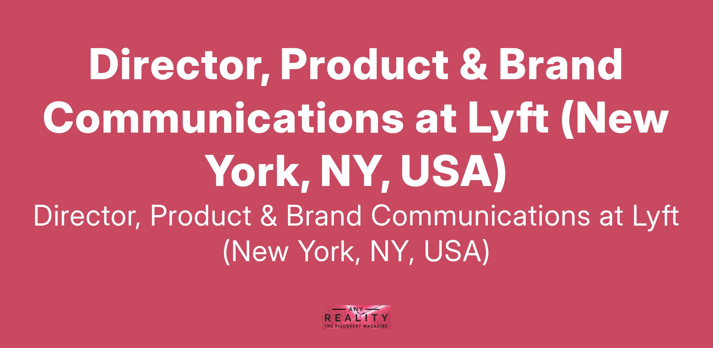 Director, Product & Brand Communications at Lyft (New York, NY, USA)