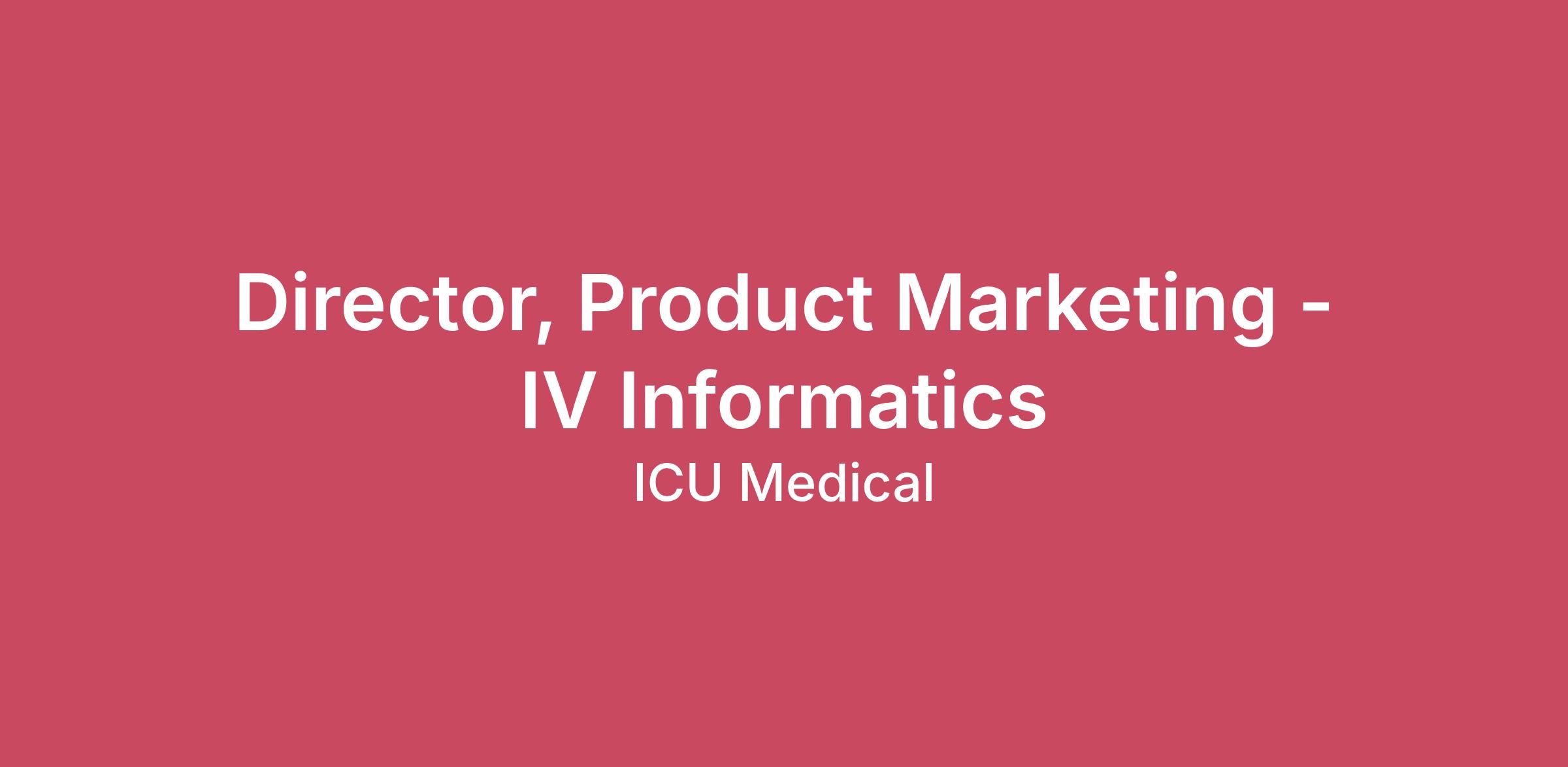 Position Summary Director, IV Informatics works collaboratively to support the successful product development, launch and ongoing success of infusion therapy informatics platforms. This role includes entire lifecycle management of a product from go-to-market strategies, product user needs development, & managing all 3rd party strategic partnerships, upstream product documentation and development, to product launch including developing market relevant key opinion leaders, clinical proof sources, and competitive analysis; coupled with sales training programs, and marketing communication materials that promote category revenue and margin growth through: strategic positioning, product development, launch and ongoing sales efforts for infusion systems and complimentary ICU Medical product technologies. This position is responsible for tracking market penetration of the comprehensive IV Informatics portfolio that supports Large Volume, Ambulatory and Syringe pump devices. Additionally, product management responsibilities include support for newly launching products and on-marketing products through the product’s life cycle(s) and will work with the global commercial teams to monitor market and competitive trends and recommend new products, product improvements and roadmap enhancements that accelerate category growth and product adoption. Essential Duties & Responsibilities Serve as the leader and product(s) expert and function as a knowledge resource for strategic market development, key customer engagement, 3rd party strategic expansion, driving increased long-term category sales, & KOL and proof source development. Ownership of global net new revenue growth in the IV Informatics infusion space. Also, serves as the leader to ensure install base is insulated from competitive threats. Requires the ability to understand, collaborate with and influence key internal corporate stakeholders, including peer marketing, R&D, & operations/production, contract marketing, services and professional services. Clearly articulate product inputs into product design for products that operate in the cloud, in hybrid cloud and follow SaaS and hybrid Saas licensing models, and utilize advanced AI architectures, development and release process for infusion systems products and maintain the product development road map, working under the direction of product leadership to develop requirements for current and future products by conducting market research, collecting and analyzing market data, trends, customer attitudes and behaviors as well as the competitive landscape. Coordinate the collection, description, analysis and prioritization of requests for new product functionality from customers, with a strong emphasis on teamwork, collaboration and communication. Drives marketing to support sales and clinical support teams through the on-market sales, development and maintenance of various technical marketing collateral including application notes, FAQs, product release notes, user guides, field training presentations, online marketing content and product demos. Including insuring successful product launches for new products and all corresponding product patches. Develop hands-on, in-depth knowledge of competitive products and maintain technical analysis of competitive strengths and weaknesses, feature sets, underlying technology, product workflow, usability, etc. to establish technical differentiation and feature/benefit statements. Solicit customer, prospect and partner input (via customer calls, user groups, site visits, tradeshows, surveys, win/loss analyses, etc.) to understand global market challenges and requirements. Work on special assignments as they arise Knowledge, Skills & Qualifications Proven track record of developing and supporting highly technical patient-focused technologies Excellent verbal and written communication skills, with the ability to adapt and articulate ICU Medical Critical Care value proposition to a variety of decision makers Must have intimate knowledge of cloud based medical device informatics development Education and Experience Bachelor’s degree from an accredited college or university is required; additional consideration for MBA and/or technical undergraduate degree Minimum 5-10 years of medical device software product management experience Recommended 3+ years of IV infusion product management experience Minimum Qualifications Must be at least 18 years of age Travel Requirements Typically requires travel a minimum of 20% of the time Physical Requirements and Work Environment This is largely a sedentary role This job operates in a professional office environment and routinely uses standard office equipment ICU Medical has consistently provided you with clinical innovations that help solve real-world challenges. With the acquisition of Hospira Infusion Systems in 2017 and Smiths Medical in 2022, we are now a global market leader with a complete line of clinically-essential IV therapy and high-value critical care products for hospital, alternate site, and home care settings. We're ready to bring you consistent quality, innovation, and value in more areas than ever. Our focus allows us to bring you: Dedicated and non-dedicated IV sets and needlefree connectors clinically proven to provide an effective barrier against bacterial transfer and colonization. The industry’s broadest IV smart pump offering covering large volume, pain management, and ambulatory needs. IV medication safety software providing full IV-EHR interoperability with the highest customer satisfaction and compatibility with more EHR systems than any other company. Significant US IV solutions manufacturing and supply capabilities. This role is based remotely; the incumbent may be remote in any state other than Colorado; California; Connecticut; Montana, Maine or New York. ICU Medical EEO Statement: ICU Medical is committed to being an Equal Opportunity Employer. We ensure that all qualified applicants receive fair
