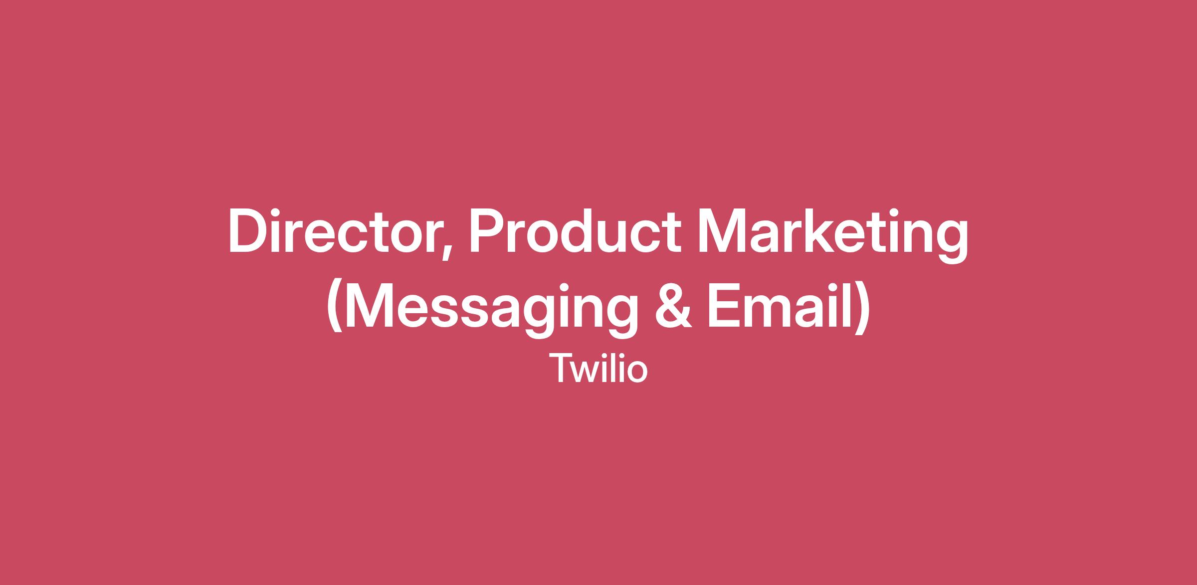 Who we are At Twilio, we’re shaping the future of communications, all from the comfort of our homes. We deliver innovative solutions to hundreds of thousands of businesses and empower millions of developers worldwide to craft personalized customer experiences. Our dedication to remote-first work, and strong culture of connection and global inclusion means that no matter your location, you’re part of a vibrant team with diverse experiences making a global impact each day. As we continue to revolutionize how the world interacts, we’re acquiring new skills and experiences that make work feel truly rewarding. Your career at Twilio is in your hands.We use Artificial Intelligence (AI) technologies to maintain an efficient, fair and transparent hiring process. Our hiring process is never completely automated, and uses AI in conjunction with our recruiting professionals.See yourself at Twilio Join the team as Twilio’s next Director, Product Marketing. About the job This position is needed to support Twilio's Messaging and Email businesses, two of our most established and highest-impact product lines serving customers who depend on reliable, scalable communications infrastructure to reach billions of people globally. As Director of Product Marketing, you'll lead a team of PMMs to define how we tell the story of trusted digital interactions in a rapidly evolving market. Twilio envisions a world in which every digital interaction is amazing, and our Messaging and Email platforms are foundational to delivering on that vision – enabling both self-service and enterprise customers to build any experience without the complexity. This role requires someone who can look beyond their immediate domain to connect narratives across Twilio's platform, identify emerging market opportunities, and translate complex technical capabilities into compelling positioning that resonates with developers, product leaders, and C-suite buyers. You'll be a key strategic partner to R&D and Marketing leadership, influencing not just what we build, but how the market understands its value. Responsibilities In this role, you’ll: Lead a high-performing team of product marketing managers across Messaging and Email, fostering a culture of excellence, collaboration, and growth. Provide career coaching and create pathways for your team's advancement. Shape and own the narrative for Twilio's Messaging and Email businesses—building positioning frameworks that connect product innovation to market trends, customer needs, and business outcomes. Your storytelling will influence sales conversations, analyst briefings, customer presentations, and executive communications. Partner deeply with R&D leadership to influence roadmap prioritization, align on positioning early in the product development cycle, and establish repeatable rituals for customer validation and market storytelling. Drive integrated go-to-market programs across self-service and enterprise segments, partnering with Corporate Communications (AR, PR, social), Campaigns, and GTM Enablement to amplify the messaging narrative, generate demand, and drive product adoption at scale. Drive meaningful product launches through Twilio's PDLC—ensuring releases are positioned strategically, supported with customer proof points, and integrated into broader go-to-market motions. Look across the business to identify where Messaging and Email intersect with broader platform capabilities and build compelling narratives that elevate how customers understand the full power of Twilio's communications infrastructure. Qualifications Twilio values diverse experiences from all kinds of industries, and we encourage everyone who meets the required qualifications to apply. If your career is just starting or hasn't followed a traditional path, don't let that stop you from considering Twilio. We are always looking for people who will bring something new to the table! *Required: 8+ years of experience in product marketing or technical marketing, with a strong track record in communications infrastructure, messaging platforms, developer tools, SaaS platforms, or enterprise software 3+ years of experience managing teams. You've built high-performing teams and developed talent that has gone on to take larger roles. You are a strategic thinker and naturally look across teams, products, and functions to identify connections and opportunities others miss. You see the forest, not just the trees. You’re an exceptional storyteller and narrative builder. You don't just describe features—you craft narratives that connect product capabilities to business outcomes, market shifts, and customer transformation. You can make the complex compelling. You have a proven ability to drive alignment and influence across R&D, AR, PR, Campaigns, Sales, and executive teams—even in ambiguous or high-stakes situations. You know how to enable and educate internal audiences to drive meaningful and actionable content. You can get things done. We want to talk about how you manage projects. You have a track record of meaningful impact. You've launched products, shaped positioning, or built programs that directly contributed to revenue growth, market perception, or competitive wins. Bachelor’s degree or equivalent experience required. Desired: Experience with established, high-revenue product lines—you understand the unique challenges of maintaining growth and innovation in mature markets. Background in messaging, email, or communications infrastructure, or adjacent areas like CPaaS, marketing automation platforms, or developer-focused communications APIs. Familiarity with developer and enterprise audiences, including how to position technical products for both builders and buyers. Experience working in fast-growth technology companies where you've scaled teams, processes, or narratives alongside the business. Strong writing and presentation skills—you're a stickler for clear, precise language and know how to craf