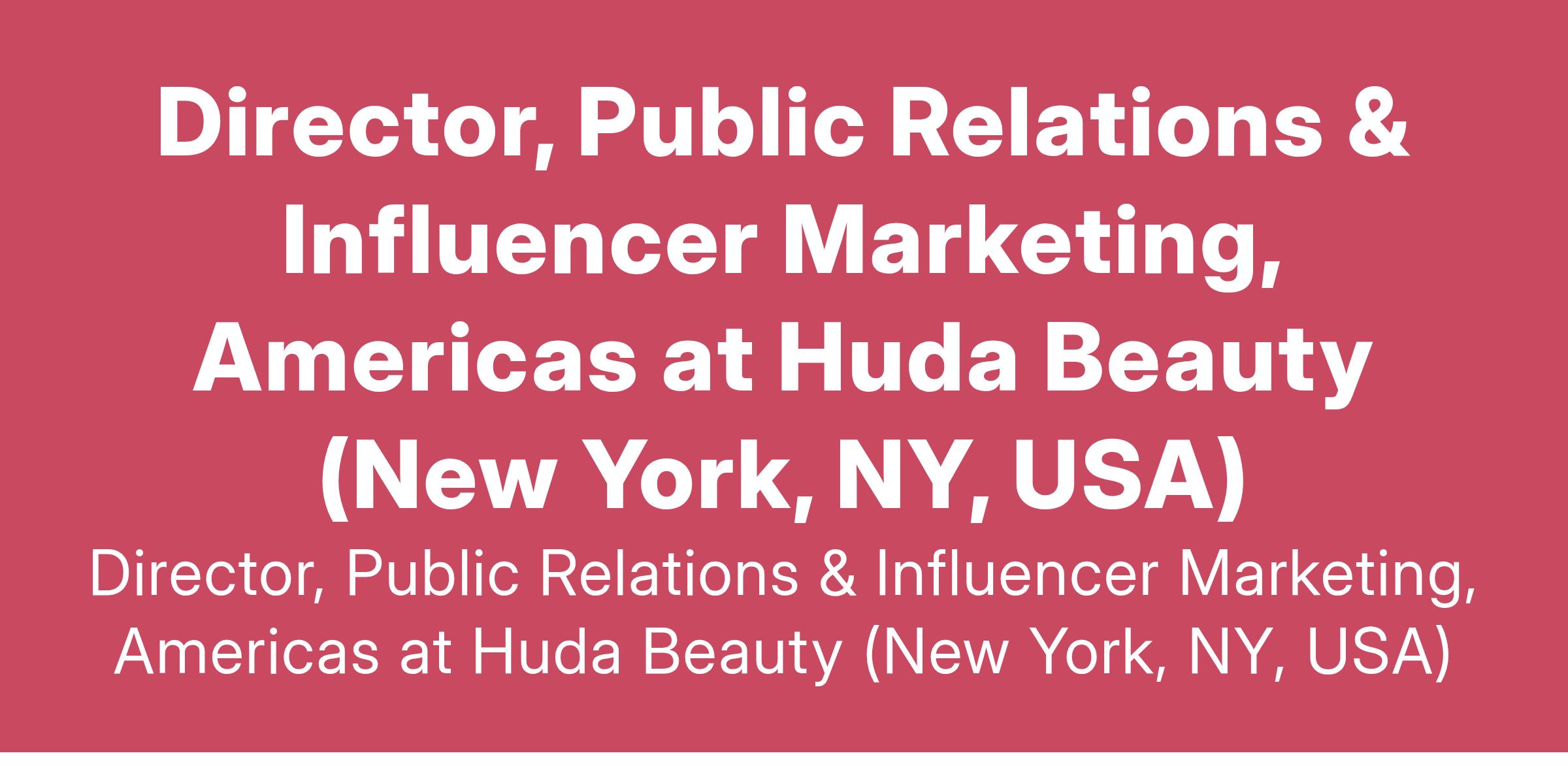 Director, Public Relations & Influencer Marketing, Americas at Huda Beauty (New York, NY, USA)