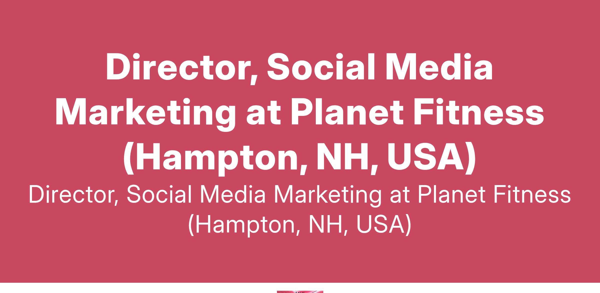 Director, Social Media Marketing at Planet Fitness (Hampton, NH, USA)