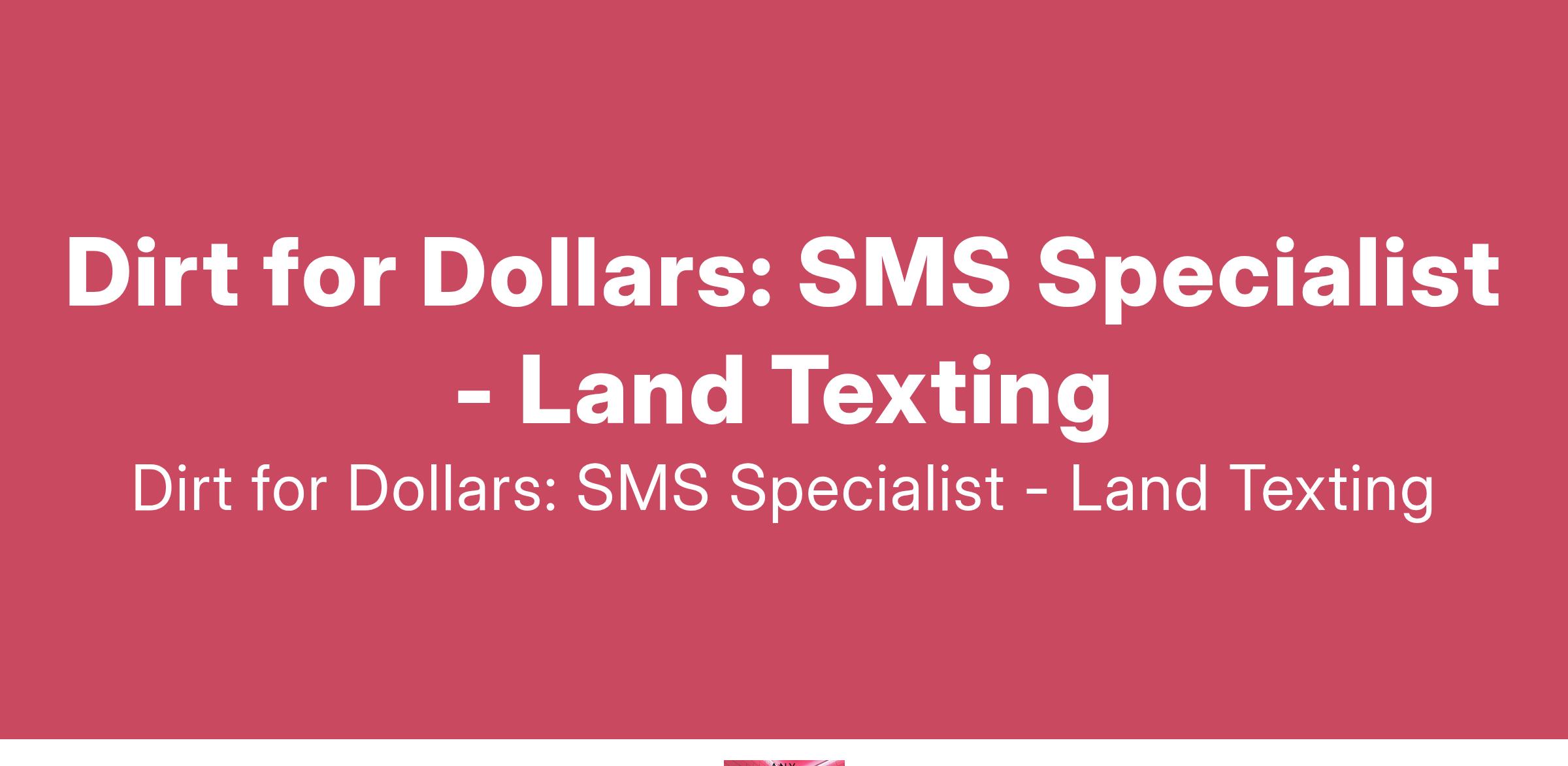 To apply: https://weworkremotely.com/remote-jobs/dirt-for-dollars-sms-specialist-land-texting