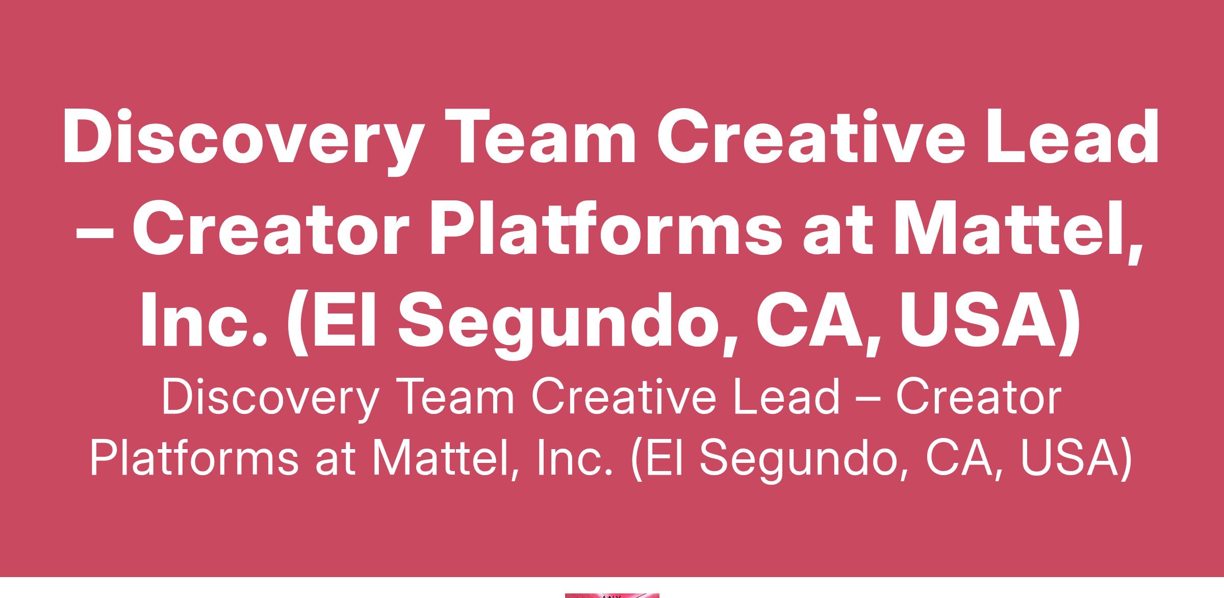 Discovery Team Creative Lead – Creator Platforms at Mattel, Inc. (El Segundo, CA, USA)