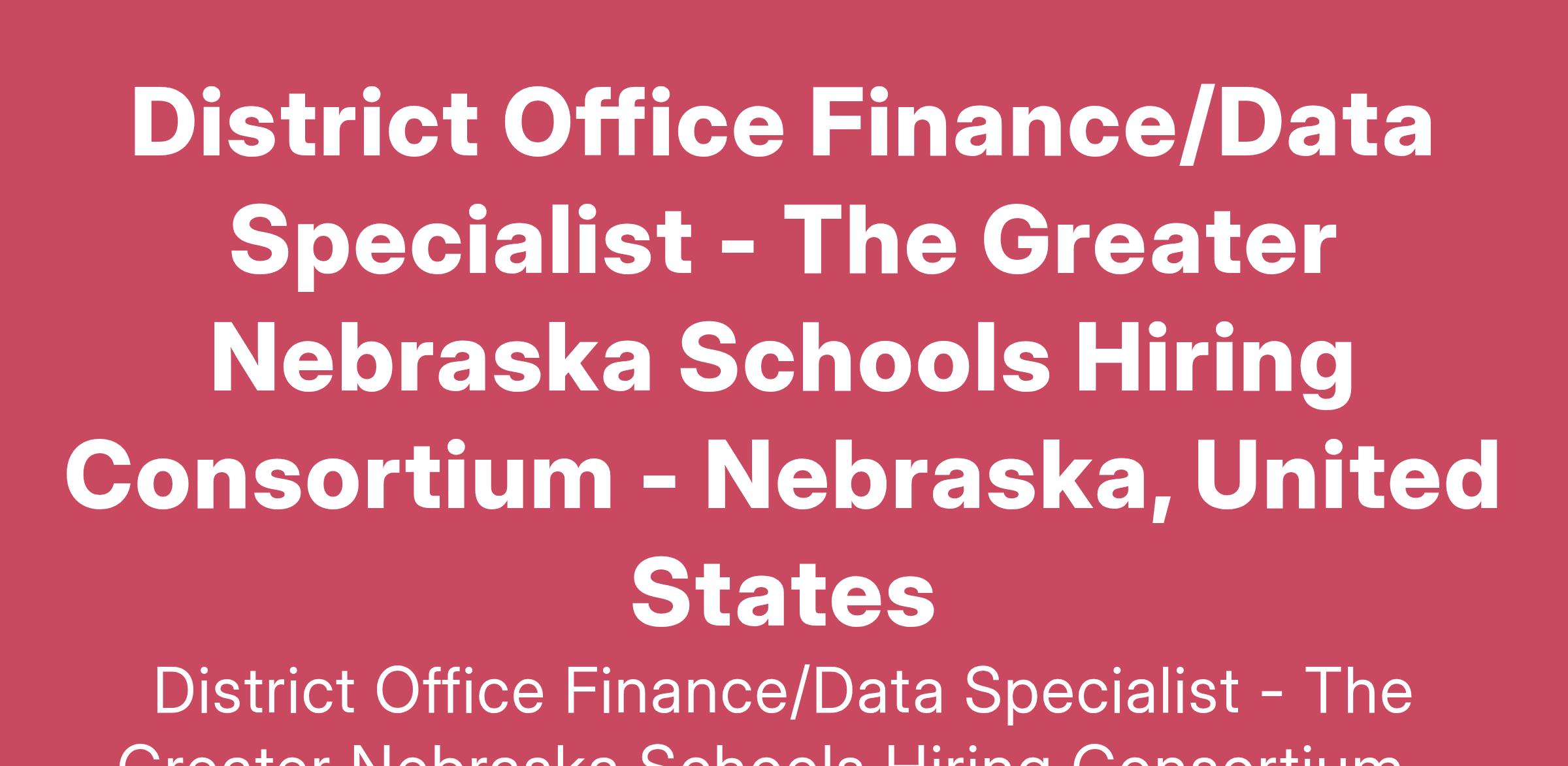 District Office Finance/Data Specialist - The Greater Nebraska Schools Hiring Consortium - Nebraska, United States