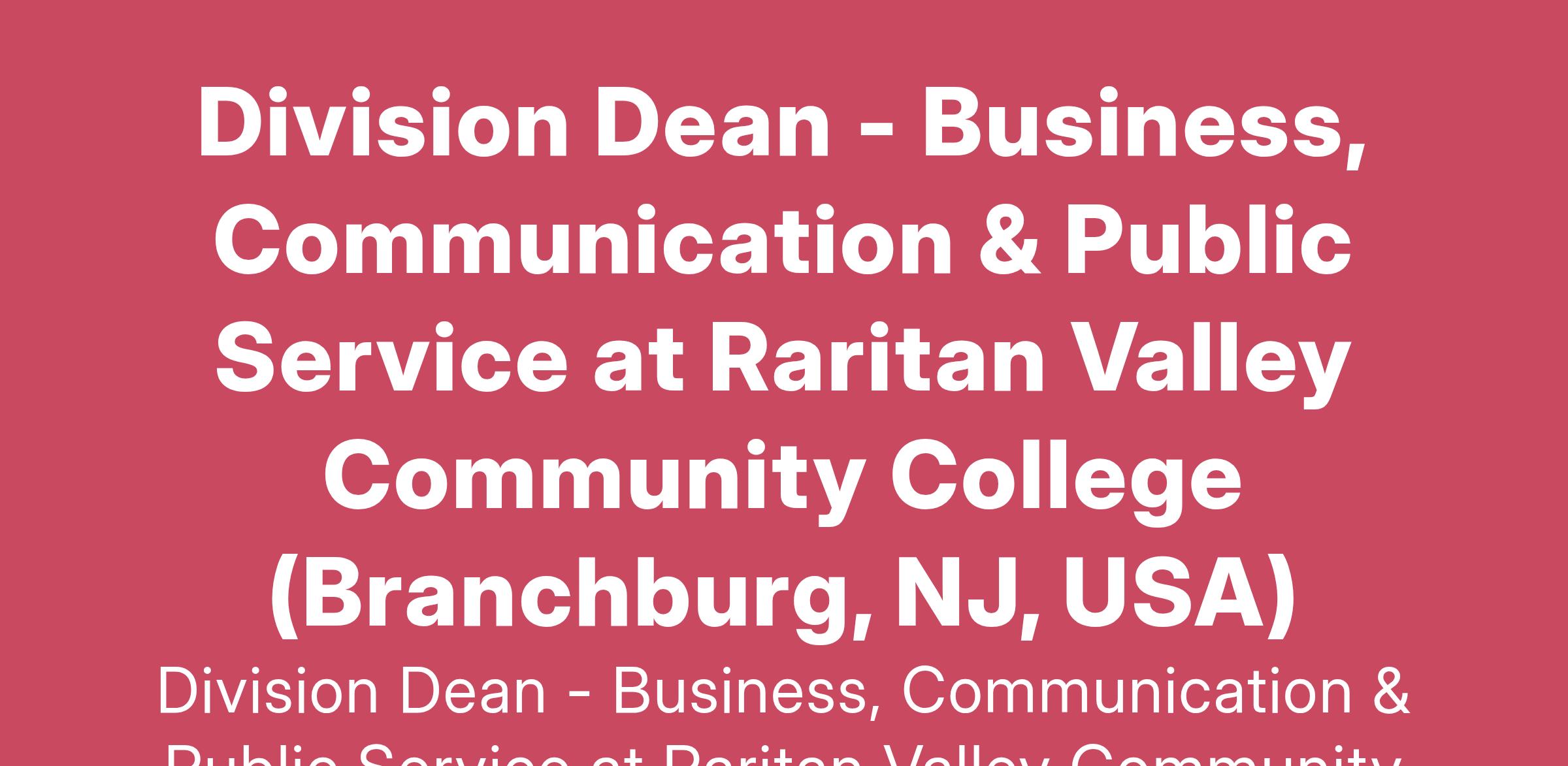 Division Dean - Business, Communication & Public Service at Raritan Valley Community College (Branchburg, NJ, USA)