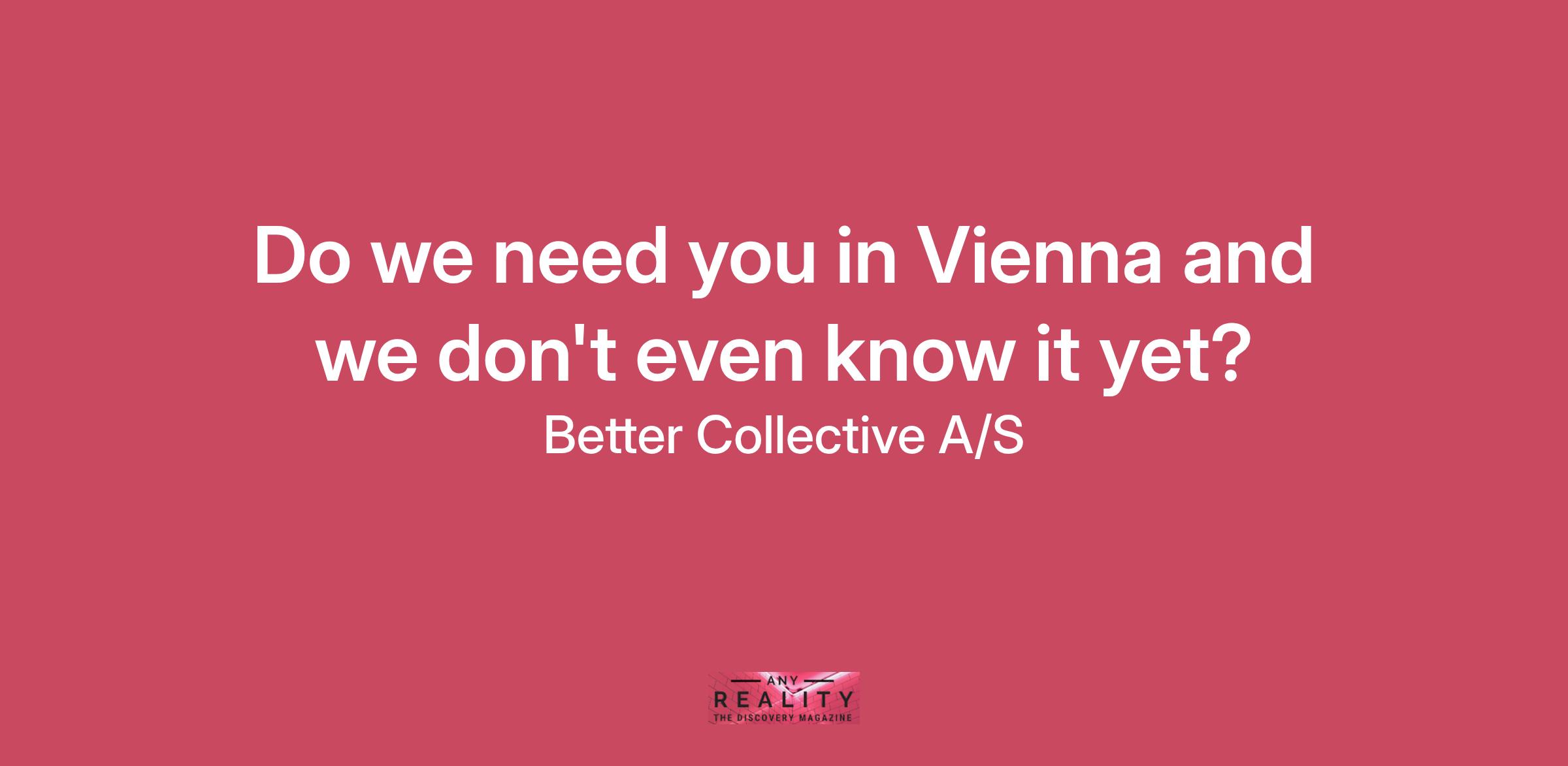 Thank you for visiting Better Collective. We're happy to know that you want to join our team and take part in our journey to become the leading digital sports media group. We always like to hear from you and if you did not find your dream job among our open positions do not hesitate to send us an unsolicited application.
