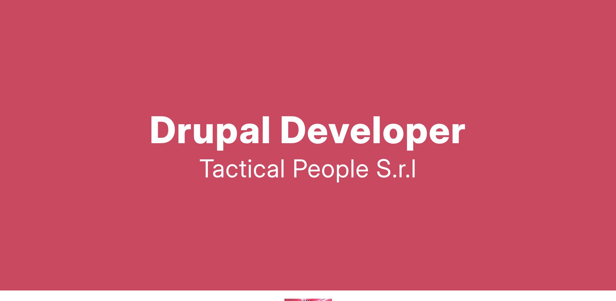 Unisciti a TACTICAL PEOPLE: Innovazione, Persone e Crescita nel Cuore della Digital Transformation Da oltre 20 anni, TACTICAL PEOPLE si posiziona come leader nel mercato ICT, guidando con passione e competenza i nostri clienti di medie e grandi dimensioni attraverso il dinamico percorso della digital transformation. La nostra mission è chiara: non solo abbracciare il cambiamento tecnologico, ma guidarlo, creando soluzioni all'avanguardia che plasmino il futuro digitale. In TACTICAL PEOPLE, crediamo fortemente nel mettere le persone al centro di ogni nostra iniziativa. Le persone sono il cuore pulsante della nostra azienda; il loro benessere, la loro crescita e il loro sviluppo sono la nostra priorità. Ci impegniamo a condividere le strategie aziendali con trasparenza e a fornire formazione e supporto a ogni livello, garantendo che ogni membro del team sia equipaggiato per eccellere e innovare. Stiamo cercando individui che condividano la nostra visione, che siano guidati dalla passione per la tecnologia e che desiderino essere protagonisti nella costruzione di un futuro digitale più luminoso. Se sei pronto a far parte di una squadra che valorizza il talento, incoraggia la crescita personale e professionale e lavora in prima linea nel settore della digital transformation, TACTICAL PEOPLE è il posto giusto per te. Posizione Aperta: Drupal Developer Sede: Milano 5 su 5 gg in sede Descrizione del ruolo: Il candidato ideale deve avere 2-5 anni di esperienza nello sviluppo web con Drupal e PHP. Cosa offriamo: Inserimento immediato in una Tech Community giovane e dinamica. TACTICAL LEARNING HUB, con corsi di aggiornamento e formazione. Il presente annuncio è rivolto ad entrambi i sessi, ai sensi delle leggi 903/77 e 125/91, e a persone di tutte le età e tutte le nazionalità, ai sensi dei decreti legislativi 215/03 e 216/03. I curricula dovranno pervenire completi di dicitura che autorizza il trattamento dei propri dati: “Si autorizza al trattamento dei dati personali ai sensi del D. Lgs. 196/2003.