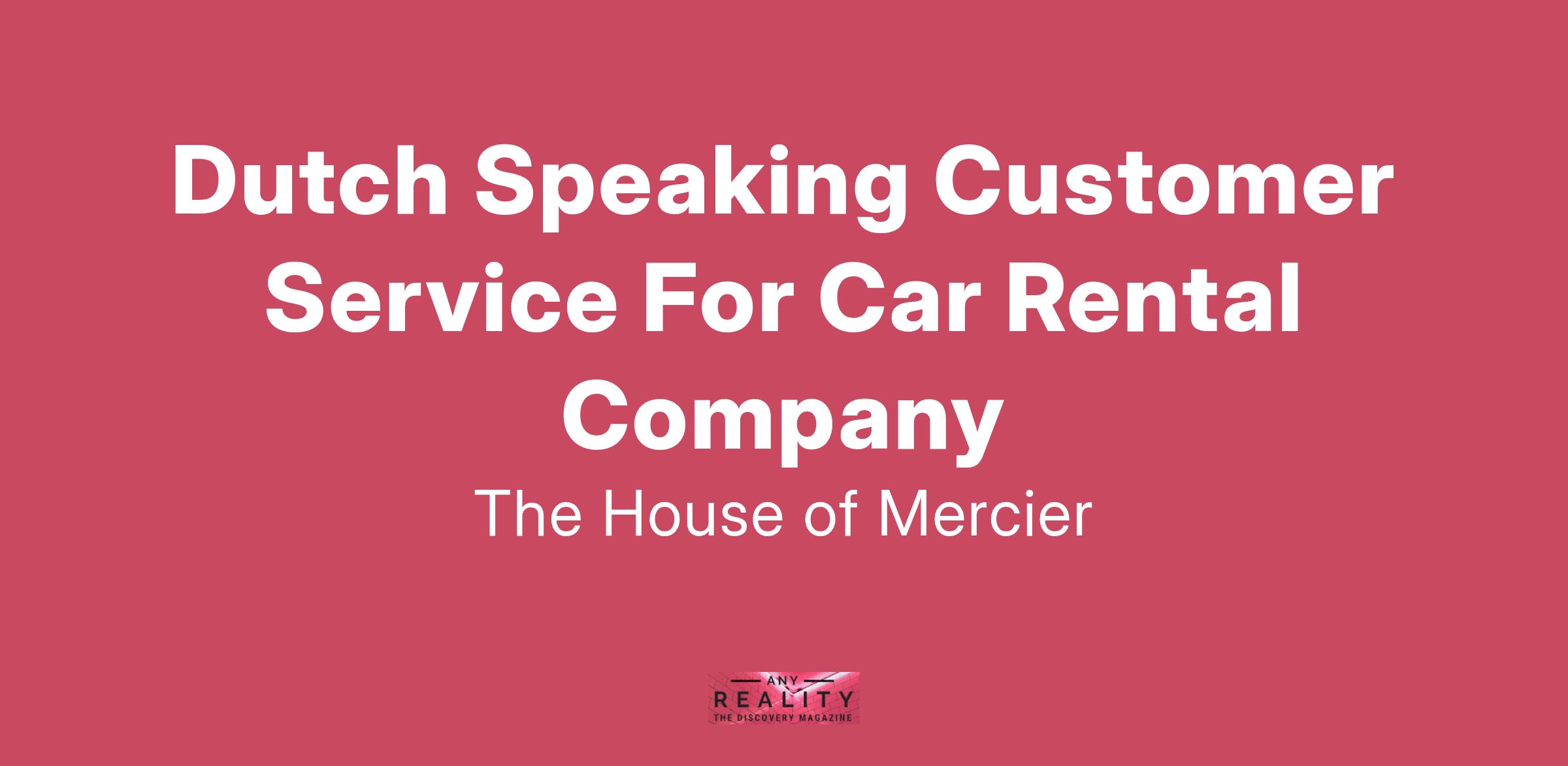 The House of Mercier is an innovative recruitment agency dedicated to matching talented individuals with exciting career opportunities across the world. We are currently seeking a highly motivated and enthusiastic Dutch Speaking Customer Service Representative to join the team of a renowned car rental company. This role is perfect for individuals who are passionate about providing exceptional customer service and thrive in a fast-paced work environment. As a key player in the customer service department, you will have the opportunity to assist customers with their inquiries, provide information about car rental services, and facilitate memorable experiences for clients. Our ideal candidate is fluent in Dutch and possesses excellent communication skills, as you will be interacting with a diverse range of customers. If you're driven, love to problem-solve, and are looking to be part of a dynamic team where your contributions matter, we encourage you to apply. Join us at The House of Mercier and take the next step in your career while helping others find the perfect rental solutions that meet their travel needs.