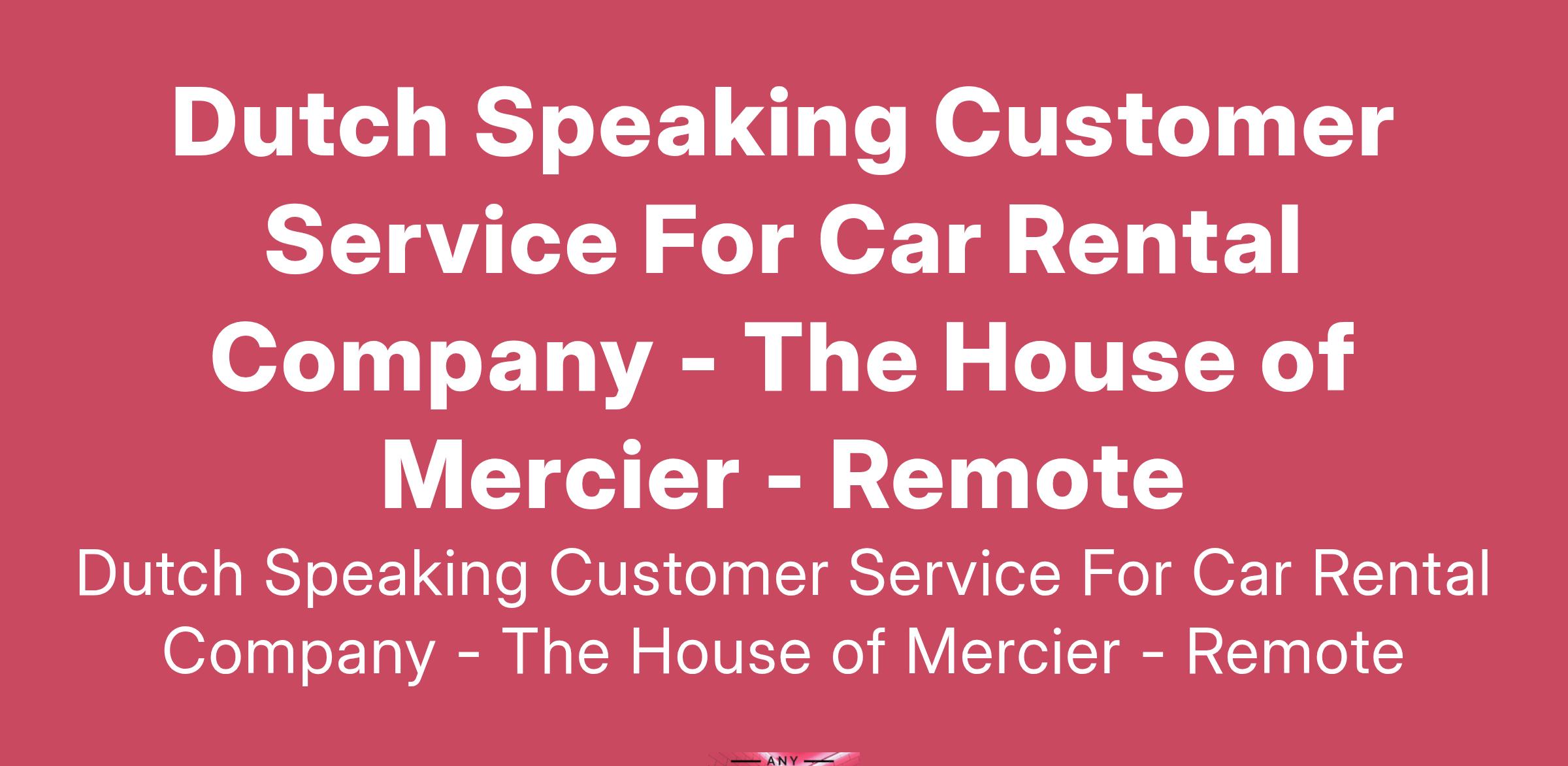 The House of Mercier is an innovative recruitment agency dedicated to matching talented individuals with exciting career opportunities across the world. We are currently seeking a highly motivated and enthusiastic Dutch Speaking Customer Service Representative to join the team of a renowned car rental company. This role is perfect for individuals who are passionate about providing exceptional customer service and thrive in a fast-paced work environment. As a key player in the customer service department, you will have the opportunity to assist customers with their inquiries, provide information about car rental services, and facilitate memorable experiences for clients. Our ideal candidate is fluent in Dutch and possesses excellent communication skills, as you will be interacting with a diverse range of customers. If you're driven, love to problem-solve, and are looking to be part of a dynamic team where your contributions matter, we encourage you to apply. Join us at The House of Mercier and take the next step in your career while helping others find the perfect rental solutions that meet their travel needs.