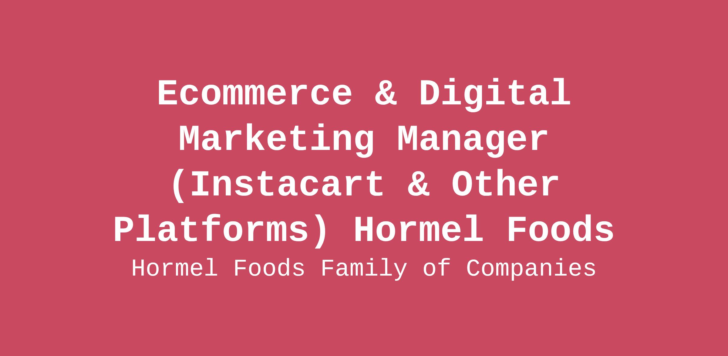 ECOMMERCE & DIGITAL MARKETING MANAGER – INSTACART & OTHER PLATFORMS - FLEXIBLE LOCATION (PREFERRED-CHICAGO, IL)To save time applying, Hormel Foods does not offer sponsorship of job applicants for employment-based visas for this position at this time.Hormel Foods CorporationABOUT HORMEL FOODS — Inspired People. Inspired Food.™Hormel Foods Corporation, based in Austin, Minnesota, is a global branded food company with over $12 billion in annual revenue across more than 80 countries worldwide. Its brands include Planters®, Skippy®, SPAM®, Hormel® Natural Choice®, Applegate®, Justin’s®, Wholly®, Hormel® Black Label®, Columbus®, Jennie-O® and more than 30 other beloved brands. The company is a member of the S&P 500 Index and the S&P 500 Dividend Aristocrats, was named one of the best companies to work for by U.S. News & World Report, one of America’s most responsible companies by Newsweek, recognized on Fast Company’s list of the 100 Best Workplaces for Innovators, received a perfect score of 100 on the 2023–24 Corporate Equality Index and has received numerous other awards and accolades for its corporate responsibility and community service efforts. The company lives by its purpose statement — Inspired People. Inspired Food.™ — to bring some of the world’s most trusted and iconic brands to tables across the globe. For more information, visit hormelfoods.com.RESPONSIBILITIES:This position is responsible for obtaining maximum profitable sales on the Instacart platform as well as expanding to other platforms (ie Door Dash, Uber Eats) for the Hormel Foods Retail Sales portfolio by effectively developing and implementing specific customer ecommerce sales strategies that leverage our marketing, brand, and trade expertise. Driving Omnichannel Sales: This position is responsible for achieving the given sales targets on the Snacking & Entertaining, Convenient Meals & Protein, Global Flavors, Bacon, and Value-Added Meats verticals on Instacart. This position leads with omnichannel insights to build programs that are shopper centric to drive business while remaining within an established budget.This position implements and executes marketing plans in the digital space for the assigned brands at the customer.This position works cross functionally with broker partners and internal sales strategy and marketing teams to identify opportunities to drive incremental sales and increase consumer loyalty for the assigned brands. This position will be accountable for researching emerging platforms, providing recommendations on investment levels by brand.General Manager of Business: This position manages all aspects of the Instacart business for assigned brands, including working with the customer, customer business manager, and the sales strategy team to establish quarterly, six month, and annual objectives that meet/exceed corporate category volume, brand volume, market share, promotion spending, logistical efficiencies, and profit objectives. Finding ways to grow the business in line with internal expectations is an essential skillset for this position.Administration of Instacart and other platforms: PO management and invoice reconciliation.Communication: This position effectively negotiates cost offers to determine appropriate investment levels, retail price points, and promotional plans to deliver topline results for the assigned portfolio of products. Penetrates mid-level management of the customer's organization in order to implement sales and marketing initiatives and maximize customer development. Growth and Development: This position continues to participate in learning and developmental workshops and as well as in local, regional, and national meetings intended to improve selling techniques, knowledge of customer and company and other business practices designed to enhance effectiveness in the marketplace.Building Relationships: This position develops and maintains strong relationships with the assigned customer, sales strategy team, brand marketing teams, and Omni Commerce team peers.QUALIFICATIONS: RequiredA bachelor’s degree or equivalent experience.Minimum 3 years' experience in a sales, marketing, or a sales strategy role. Demonstrated experience managing budgets.Demonstrated experience managing external agency/vendor partners. Demonstrated experience creating a marketing plan to reach a desired shopper group.Demonstrated strong leadership skills; ability to prioritize, delegate tasks, and make sound decisions quickly while maintaining a focus on delivering sales results.Demonstrated strong negotiation skills; ability to persuade and influence others in finding a win-win solution where possible.Demonstrated strong interpersonal and communication skills; ability to cultivate positive relationships and communicate with clarity and diplomacy.Demonstrated pattern of initiative; self-directed, independent worker, with experience in strategic risk taking.Must be a Citizen or National of the United States, a lawful, permanent resident, or have authorization to work in the United States.Applicants must not now, or any time in the future, require sponsorship for an employment visa.Preferred4 years in a sales, marketing, or sales strategy role.eCommerce sales experience, specifically through the Instacart platform. Demonstrated understanding of retailer marketing landscape and concepts in digital. Demonstrated strong analytical and technical aptitude.LOCATION: This has a flexible location of Austin, MN; Bedminster, NJ with a preferred location of Chicago, IL.BENEFITS: Hormel Foods offers an excellent benefits package. Competitive base salary plus target incentive, discretionary annual merit increase, annual performance review, medical, dental, vision, non-contributory pension, profit sharing, 401(k) immediate eligible, stock purchase plan, relocation assistance, paid personal time (PTO), FREE two-year community/technical college tuition for children of employees, and more.A