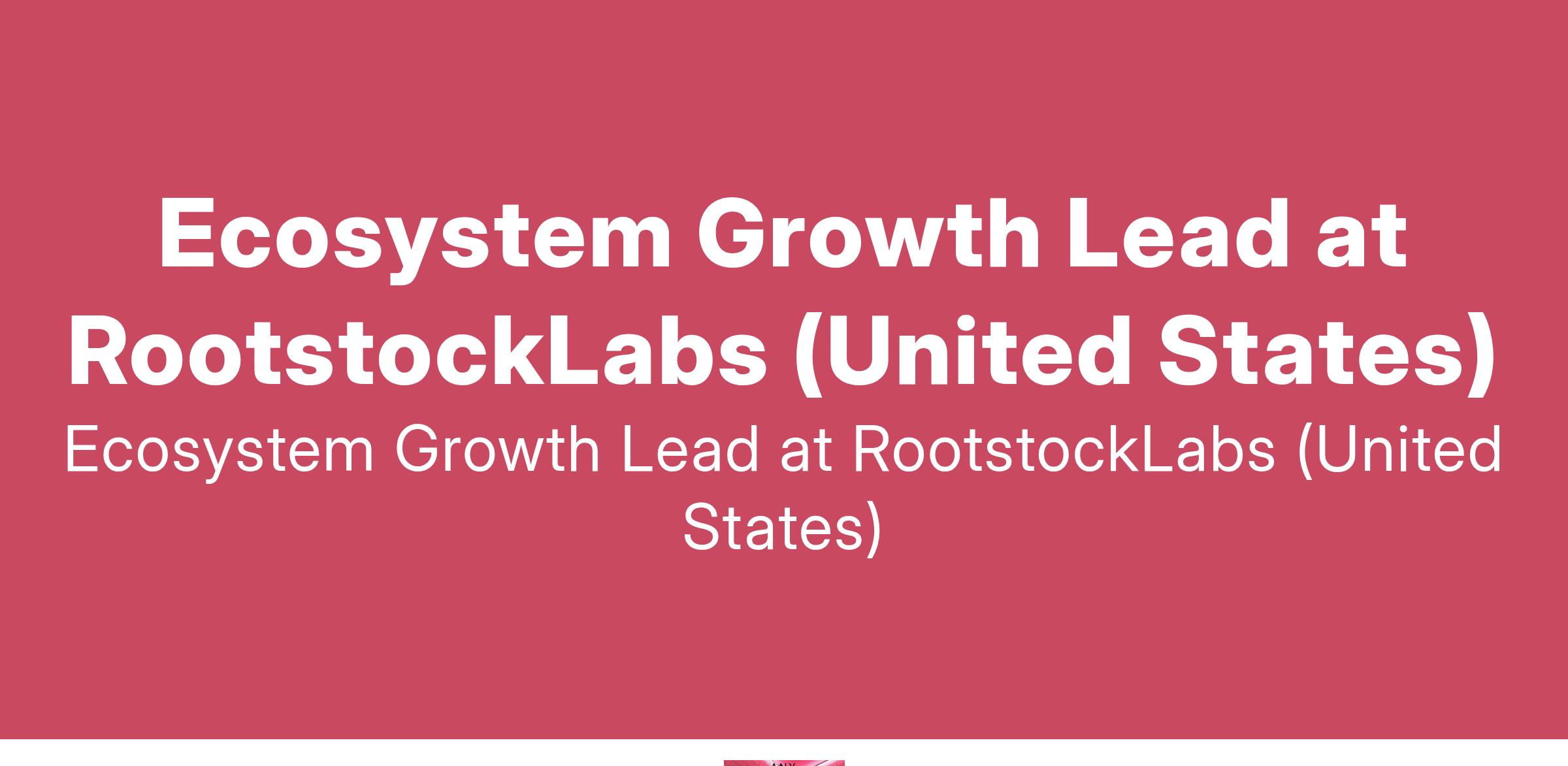 As a Ecosystem Growth Lead, you will drive awareness, access, and adoption of Rootstock Total Product (Rootstock + RIF) by fostering...