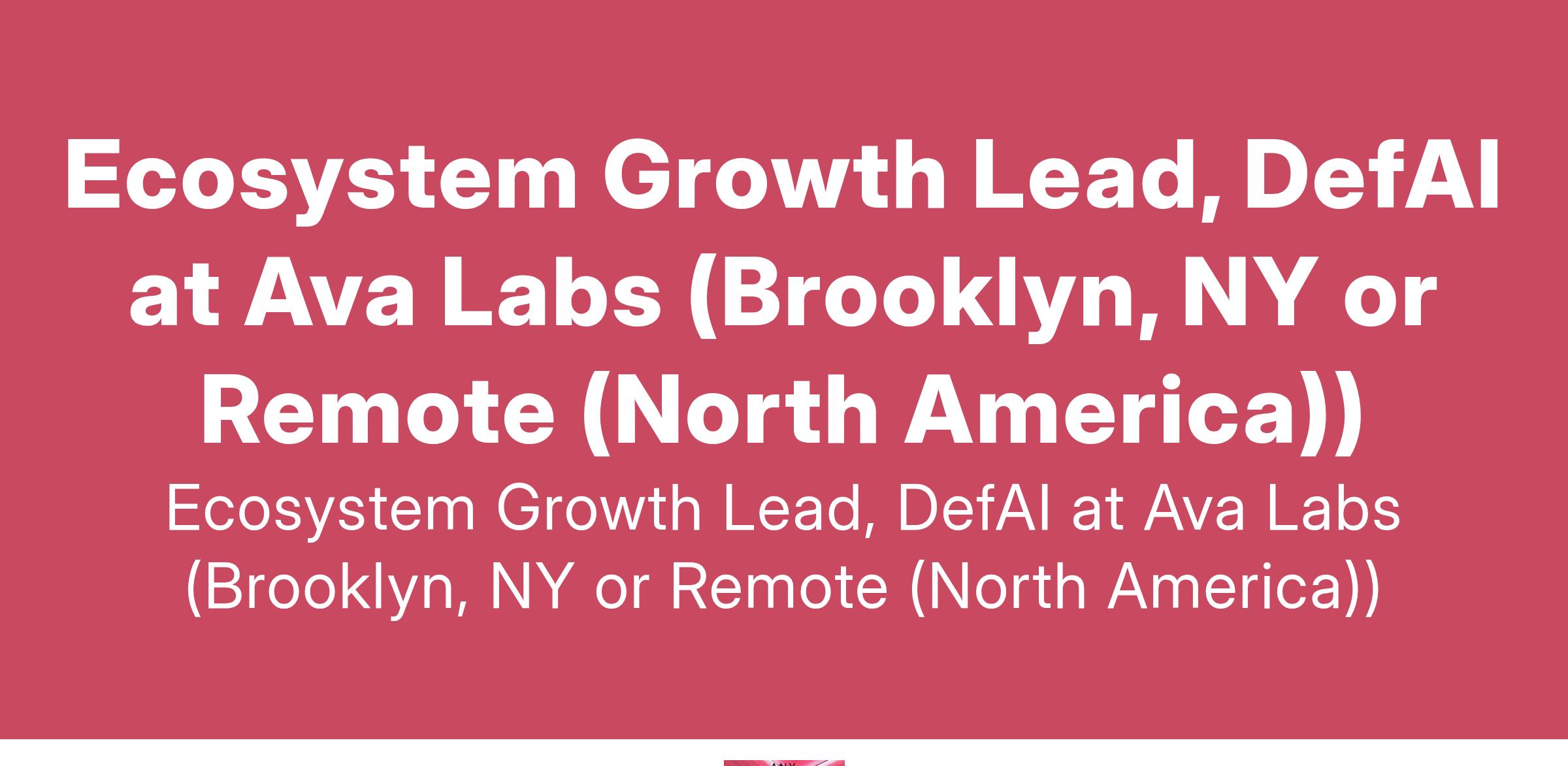 Ecosystem Growth Lead, DefAI at Ava Labs (Brooklyn, NY or Remote (North America))