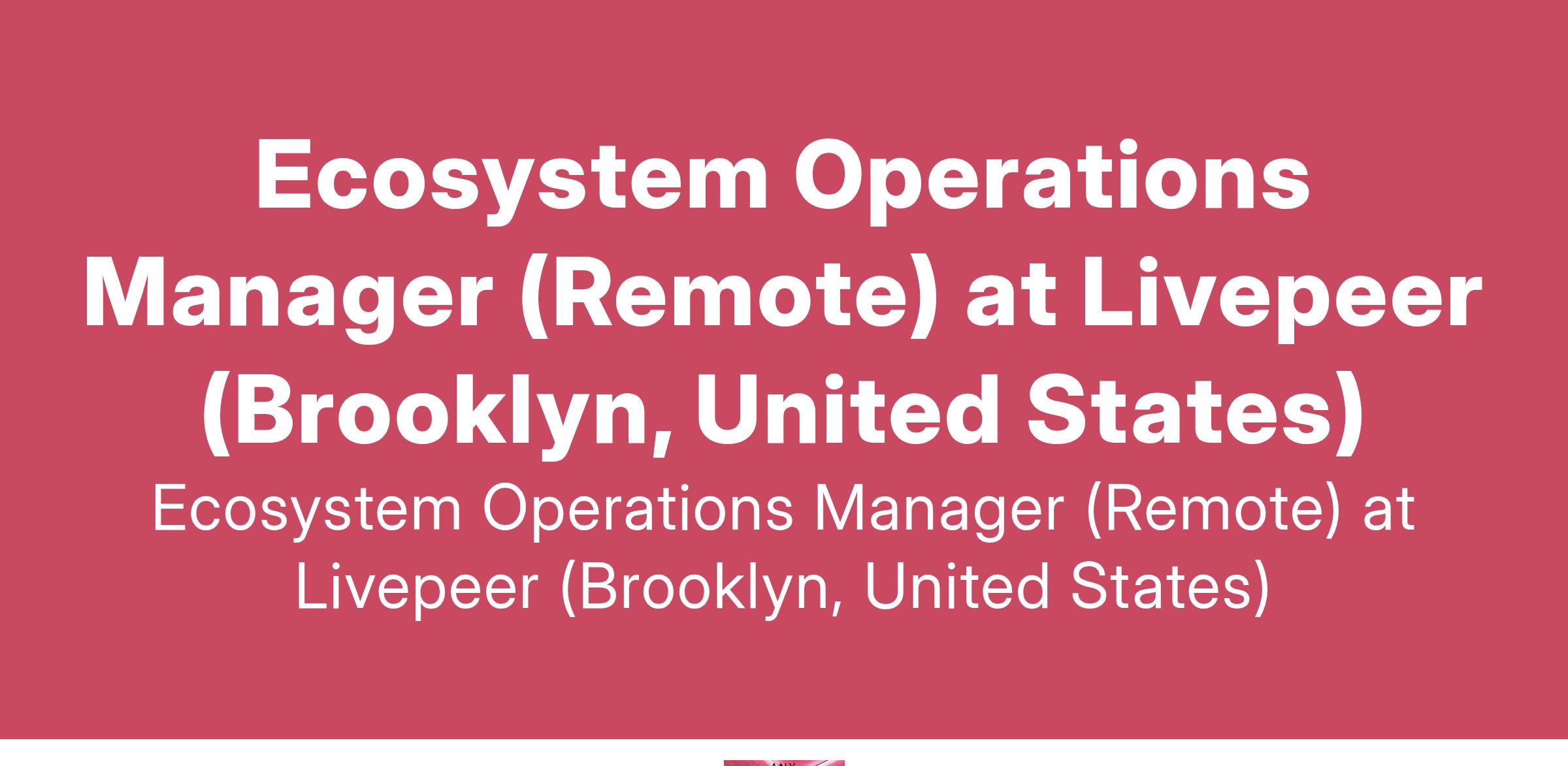 Ecosystem Operations Manager (Remote) at Livepeer (Brooklyn, United States)