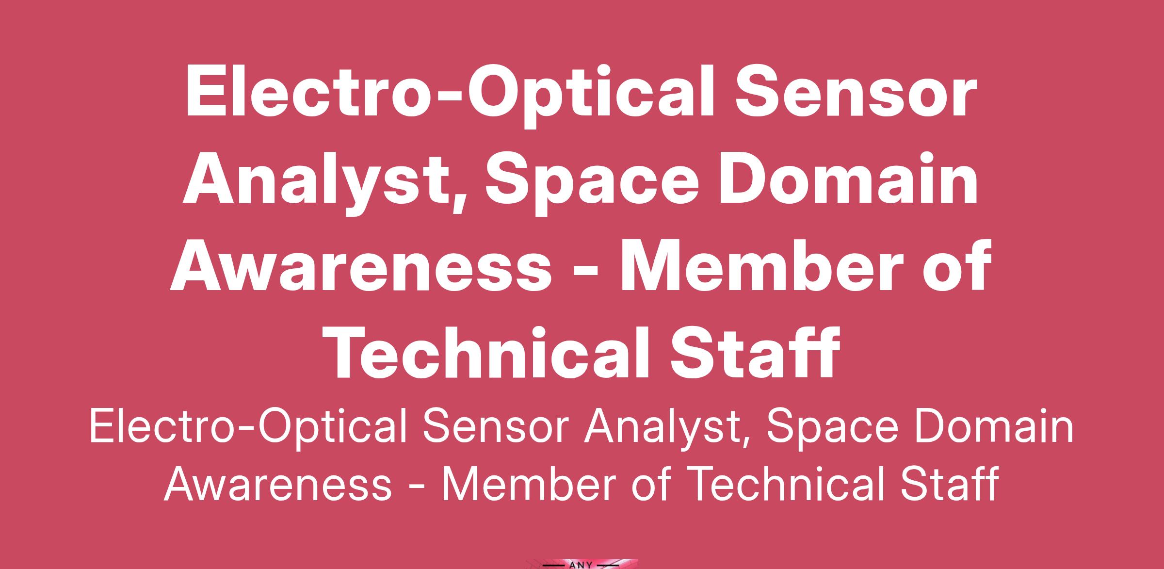 Electro-Optical Sensor Analyst, Space Domain Awareness - Member of Technical Staff