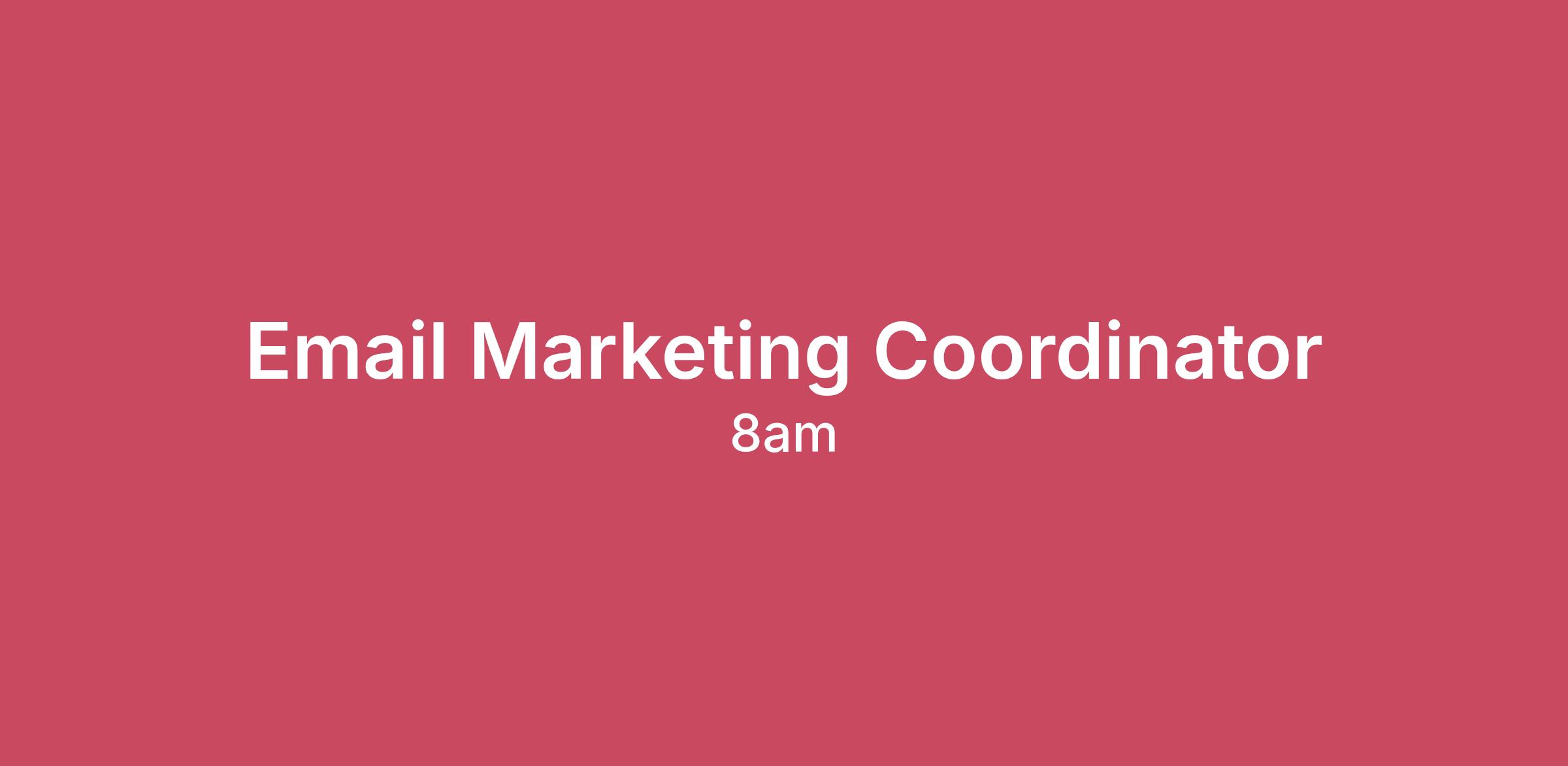 It's a new day with a new opportunity at 8am! About the role: We’re looking for a highly organized, detail-oriented Email Marketing Coordinator to support the creation, coordination, and deployment of customer “need-to-know” communications across email, in-app messaging, chat, and SMS. This role combines foundational email marketing skills with strong project management, helping ensure customers receive timely, accurate, and consistent information throughout their lifecycle. This role plays a key part in solving a growing organizational need: today, customer communications are decentralized, inconsistently prioritized, and often handled in a “hot potato” fashion across teams. By bringing operational rigor and centralized coordination, this role will help reduce customer confusion, streamline internal workflows, and deliver a cohesive, customer-centric communication experience. About us: At 8am, our vision is to power a world where professionals thrive. We start every day on a mission to empower professionals with the most trusted, innovative technology to deliver world-class outcomes for their clients and exceptional financial results for their business. They count on our purpose-built solutions to simplify operations, ensure compliance, and fuel profitable growth, so they can focus on their clients and do more of the work that matters. Founded in 2005, 8am™ (formerly AffiniPay) is the professional business platform built to help legal, accounting, and other client-focused professionals run stronger, more profitable businesses. Today, more than 250,000 professionals across the U.S. trust 8am to help them work smarter, serve clients better, and unlock their full potential. We have been recognized as one of Inc 5000’s fastest growing companies in the U.S. for 13 years in a row, and as a result, our teams continue to grow as well! What you'll do: Project & Workflow Management Act as project manager for customer notifications, ensuring all communications move efficiently from intake → creation → approval → deployment. Collect and manage all necessary inputs for each communication, including: Audience lists or targeting criteria Email copy or messaging requirements Stakeholder approvals (Legal, Product, CS, etc.)Timing recommendations and dependencies Create and manage Asana tasks for each communication, keeping all steps, owners, timelines, and deliverables organized and on track. Coordinate cross-functional teams to align timelines, resolve conflicts, and ensure clarity on roles and expectations. Execution & Deployment Support Partner with Engagement Marketing to prepare communications for deployment (email, SMS, in-app, etc.). Assist with building or QA’ing emails in our deployment platform (no advanced coding required, but familiarity with templates is helpful). Ensure accurate audience uploads and segmentation in collaboration with the deployment specialist. Support testing, proofing, and final review to ensure error-free execution. Governance & Quality Assurance Help establish consistency and quality across all customer communication touchpoints. Maintain documentation for processes, templates, naming conventions, and best practices. Track communication volume, timelines, and cross-team impacts to help inform prioritization. Flag risks early (timeline conflicts, unclear requirements, missing approvals, etc.). The Types of Communications You’ll Support This role focuses on “need-to-know” customer communications that fall outside revenue-driving marketing, including: Product migrations, sunsets, and deprecations Onboarding sequences and education Legal, regulatory, and compliance notifications Customer surveys, NPS, and experience programs Feature adoption communications Customer support updates and alerts Operational or transactional notifications About you: 2-3 years of experience in email marketing, project coordination, customer communications, or a related role Basic understanding of email marketing platforms and common terminology (templates, segments, testing, proofs, etc.) Strong project management skills and the ability to keep multiple workstreams organized Excellent communication and collaboration skills High attention to detail and commitment to accuracy Comfort working cross-functionally and navigating shifting priorities Demonstrated experience leveraging AI tools and technologies to improve workflows, enhance decision-making, or drive innovation. Nice to have: Experience with Asana or similar project-management tools Familiarity with basic email editing or QA Experience partnering with Legal, Product, CS, or Support teams Exposure to customer lifecycle communications Additional InformationThe annual salary range for this position is $70,000 to $80,000. The salary range for performing this role outside of the US / Austin / California may differ. 8am is committed to offering competitive, fair and commensurate compensation and has provided an estimated pay range for this role. Actual compensation may vary based on job-related knowledge, skills, experience and education.Why 8am: At 8am, our culture is shaped by the people who bring it to life every day. Together, we build a company rooted in continuous learning, genuine community, holistic wellness, and meaningful engagement—values that empower us as individuals and unite us as a team. Our culture is grounded in our core values: Work Smart, Win Fast; Outshine Ordinary, and We Find a Way. These values drive how we serve our customers and work with each other in a collaborative, inspiring, and empowering environment, every day. Here’s how we support our 8Team: Health Insurance Coverage: We offer our 8Team a variety of medical, dental, and vision plans, designed to fit your needs, including a 100% company-paid HDHP plan for employees. Financial perks: We offer a competitive compensation and benefits package including annual bonuses, equity options and 401(k) or RRSP if in Canada, with a company matc