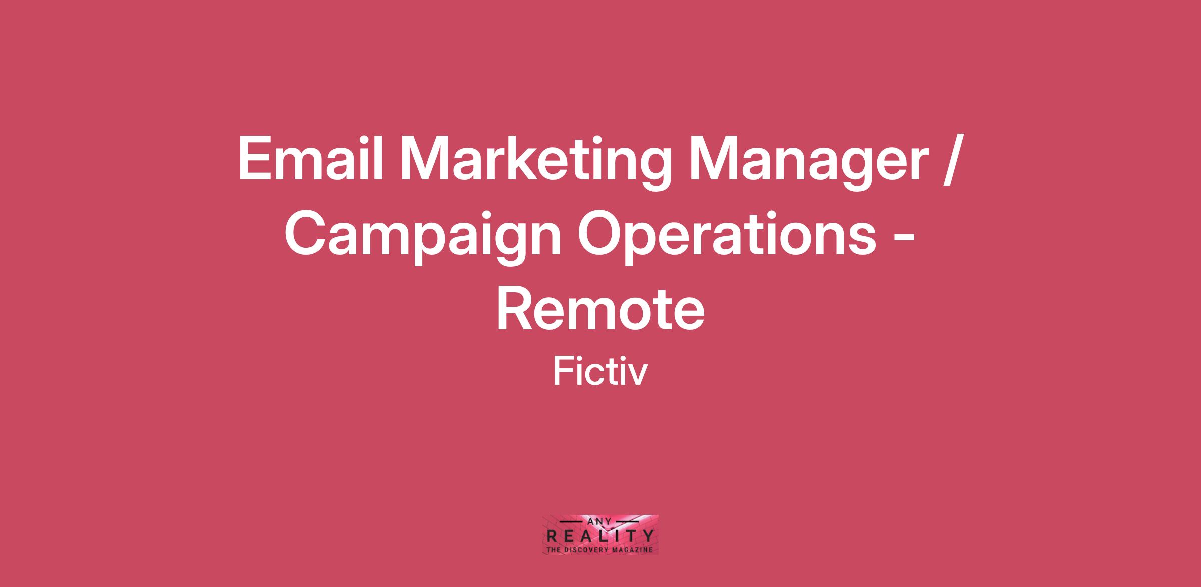 Fictiv Exists to Enable Hardware Innovators to Build Better Products, Faster Fictiv, coined the “AWS of manufacturing,” is a leading technology company transforming the $350 billion manufacturing industry. Our cutting-edge cloud platform uses AI and machine learning algorithms to help companies build hardware at the speed of software. Come join our growing team! Email Marketing Manager / Campaign Operations Impact In This RoleAs an Email Marketing Manager / Campaign Operations, you will be responsible for end-to-end campaign planning, execution, and monitoring of omni-channel marketing campaigns. Leveraging our Marketing Technology (Martech) stack you will have great decision-making capabilities as well as responsibilities to support the businesses financial targets. Work with a cross-department group across Marketing, Growth and Product teams to plan, build, deploy and improve campaigns. This includes single-send campaigns, to multi-channel product releases (across web, webinar, digital ad, email, etc.), to nurture campaigns of prospect to long-term customers. This role has the opportunity to grow into strategic planning, and/or Marketing Technology management. Areas of Responsibility Build, deploy and report on campaigns executed in Marketo or equivalent Marketing Automation System, and leverage Martech integrations. Experience in the exact Martech stack is not necessary but must want and enjoy learning new tools. Intake planning with cross-functional stakeholders for prioritization and omni-channel campaign execution. Responsible for all Marketing Campaign Operations across: email, web forms, nurture builds and maintenance. Assists in project management of PMM campaigns: discovery, build and deployment, QA. Backup of Marketing Operations - Marketo backend management, architecture requirements and new deployments. Develop best-practices for leveraging our entire Marketing Technology stack to engage prospects. Track, analyze, and improve on campaigns while reporting on success metrics. Working with Lifecycle and other marketer team members, identify and champion new campaign and/or persona opportunities. Physical DemandsThe physical demands described here are representative of those that must be met by an employee to successfully perform the essential functions of this job. Reasonable accommodations may be made to enable individuals with disabilities to perform the essential functions. While performing the duties of this job, the employee routinely is required to sit; walk; talk and hear; use hands to keyboard, fingers, handle, and feel; stoop, kneel, crouch, twist, crawl, reach, and stretch. Desired Traits, Qualifications, Education and Experience Equivalency 3–5 years of professional experience with Marketing Operations. Experience within Marketing Automation Platforms (MAPs): Marketo, HubSpot, Eloqua, etc. Experience working with Martech platforms integrated with MAP: Drift, Chili Piper, GotoWebinar, systems, and the sync to MAPs (Salesforce and Marketo preferred). Experience with Knak is also highly preferred. 4-year degree in Information Technology, Marketing or related field. Degrees in similar areas of study will also be considered. Excellent communication skills and the ability to work as part of a team are essential. A successful candidate will also exhibit a strong desire to learn and understand all aspects of the company’s operations and be able to interact directly with other departments. Highly organized with exceptional attention to detail. Ability to handle multiple priorities in a fast-paced environment. Ability to travel 0–10% annually in the U.S. for team meetings, offsites, etc. Perks and Benefits Competitive medical, dental, and vision insurance 401K plan Monthly Virtual Work stipend for things like food, internet, travel, pet care, health and wellness Annual Education stipend Parental leave programs Paid volunteer days Onboarding setup, including: standing desk, laptop, monitor, and chair, and a stipend for additional items such as headphones, blue light glasses, or any other ergonomic supplies you may want or need And much, much more! Fictiv is continuing to expand our remote US workforce. Applicants from the following states are eligible to apply: Arizona (AZ), California (CA), Colorado (CO), District of Columbia, (DC), Delaware (DE), Florida (FL), Georgia (GA), Hawaii (HI), Iowa (IA), Illinois (IL), Indiana (IN), Kansas (KS), Massachusetts (MA), Maryland (MD), Michigan (MI), Minnesota (MN), Missouri (MO), North Carolina (NC), Nevada (NV), New Hampshire (NH), New Jersey (NJ), New York (NY), Ohio (OH), Oregon (OR), South Carolina (SC), Texas (TX), Tennessee (TN), Utah (UT), Virginia (VA), Washington (WA), West Virginia (WV), Wisconsin (WI), Wyoming (WY) Salary Range: $75,000 to $110,000 per year, depending upon experience Interested in learning more? We look forward to hearing from you soon. About Fictiv Our Digital Manufacturing Ecosystem is transforming how the next rockets, self-driving cars, and life-saving robots are designed, developed and delivered to customers around the world. This transformation is made possible through our technology-backed platform, our global network of manufacturing partners, and our people with deep expertise in hardware and software development. We’re actively seeking potential teammates who can bring diverse perspectives and experience to our culture and company. We believe inclusion is the best way to create a strong, empathetic team. Our belief is that the best team is born from an environment that emphasizes respect, honesty, collaboration, and growth. We encourage applications from members of underrepresented groups, including but not limited to women, members of the LGBTQ community, people of color, people with disabilities, and veterans.