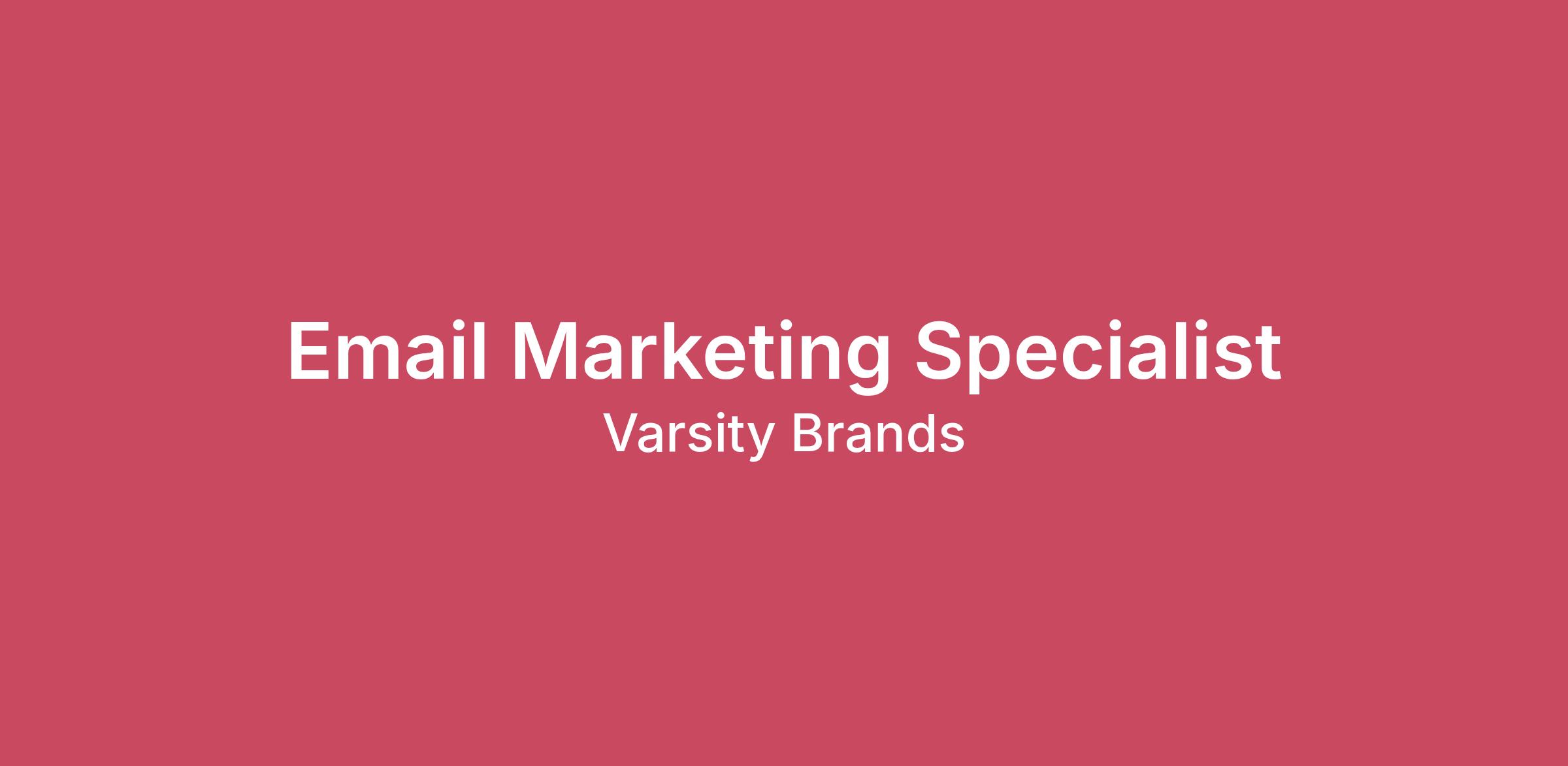 VARSITY SPIRIT, A VARSITY BRANDS COMPANY - THE DRIVING FORCE IN SPIRIT ACROSS CHEER, DANCE, BAND AND YEARBOOK For over 50 years, Varsity Spirit has been the leading global source for all things spirit, including cheerleading, dance team, performing arts and yearbook. Focused on safety, entertainment and traditional school leadership, Varsity Spirit’s 5,000+ employees are dedicated to celebrating school spirit. A leader in apparel innovation, educational camps, clinics, competitions, and yearbook, Varsity Spirit impacts more than a million athletes each year.OUR COMMITMENT TO SAFETY At Varsity Spirit, the safety and wellbeing of the young people we serve is of the utmost importance. Since our inception 50 years ago, we have been – and remain – steadfastly committed to doing our part to create a safe and positive environment for our participants’ physical, emotional, and social development, and promoting an environment free from abuse and misconduct. Varsity has a zero tolerance for abuse in its programs, events, and associated business activities. Varsity is committed to reporting all suspicions, allegations, and incidents of abuse in full accordance with local laws and reporting requirements. Learn more at Our Commitment to Safety - Varsity.com.WORK TYPE: Full-TimeRemoteLOCATION: Indianapolis, IN Preferred but open to Kansas City, Dallas, and Memphis based candidatesHOW YOU WILL MAKE AN IMPACT: The role of Email Marketing Specialist is part of our dynamic marketing team and contributes to our mission of elevating the student experience with creative, data-driven email campaigns.WHAT YOU WILL DO:Campaign Management: Plans, develops, and executes email marketing campaigns tailored to both B2B audiences (educators, schools, administrators) and B2C audiences (students, parents) to drive engagement, leads, and conversions.Journey Building: Designs and implements customer journeys using Salesforce Marketing Cloud, leveraging data-driven insights to create personalized and automated user experiences.Value-Add Marketing: Develops email strategies that support our B2B2C services, ensuring schools have the resources and tools they need to effectively reach students and parents.Event-Driven Campaigns: Creates email marketing initiatives to promote workshops, tradeshows, and other extraordinary events, driving participation and engagement.Data Personalization: Uses CRM and flat file data sources to build segmented and targeted email campaigns that address diverse audience needs.Reporting & Optimization: Analyzes campaign performance metrics, generate actionable insights, and implement strategies for continuous improvement.Collaboration: Works cross-functionally with sales, creative, and product teams to align email strategies with broader marketing goals.QUALIFICATIONS: Knowledge/Skills/AbilitiesAbility to work with large data sets in Excel, PowerBI, etc. platforms for data cleanup, management, and reporting.Proven ability to manage email marketing campaigns for both B2B and B2C audiences, with a focus on delivering measurable results.Exceptional written communication and proofreading skills.Strong analytical skills with the ability to interpret campaign data and improve results.Experience in the education industry or yearbook market is a plus but not required.Education/Experience 2+ years of direct experience with Salesforce Marketing Cloud (Email Studio, Journey Builder, Automation Studio).Strong understanding of email marketing best practices, A/B testing, segmentation, and lifecycle marketing strategies.Experience working with CRM systems and flat file data for personalized campaign execution to over 1M contacts.PHYSICAL REQUIREMENTSSitting/Computer Work: Prolonged periods sitting at a desk using a computer, often for data analysis, content creation, or digital marketing campaigns.Repetitive Motion: Typing, mouse use, and screen time can cause strain (e.g., eye strain, carpal tunnel).Occasional Lifting/Carrying: May be required to lift lightweight materials (brochures, marketing collateral, event supplies)—under 25 lbs.Travel: Some roles may involve occasional travel for client meetings, trade shows, or field events.Speaking and Listening: Regular communication with colleagues, vendors, clients, or customers via phone, video calls, and in-person.#LI-PC1Please note this job description is not designed to cover or contain a comprehensive listing of activities, duties or responsibilities required of the employee for this job.JOIN THE BEST TEAM IN SPORT & SPIRITAt Varsity Brands, we believe every student deserves the opportunity to succeed and every educator wants to make a difference. It takes a team to make a real impact, and through our two divisions – BSN SPORTS and Varsity Spirit – and our network of 6,000+ employees and independent representatives, we are proud to partner with a wide range of educational institutions and club and professional sports to transform the student journey in SPORT and SPIRIT.OUR VALUESService - We lead with heart. We champion community.Passion - We love what we do. It fuels our purpose.Integrity - We do what we promise. We own our actions and decisions.Respect - We earn it by giving it. Because everyone deserves it.Innovation - We never stop striving to be better. For ourselves and our community.Transparency - We are committed to openness and honesty in everything we do.OUR BENEFITSWe are committed to putting you and your families first. For benefits eligible roles, we offer a variety of choices and costs as well as program enhancements that align with our responsibility to elevate the employee experience. Some of our offerings include:Comprehensive Health Care BenefitsHSA Employer Contribution/ FSA OpportunitiesWellbeing Program401(k) plan with company matchingCompany paid Life, AD&D, and Short-Term DisabilityGenerous My Time Off & Paid HolidaysVarsity Brands Ownership ProgramEmployee Resource GroupsSt. Jude Partnership & Volunteer OpportunitiesEmploye