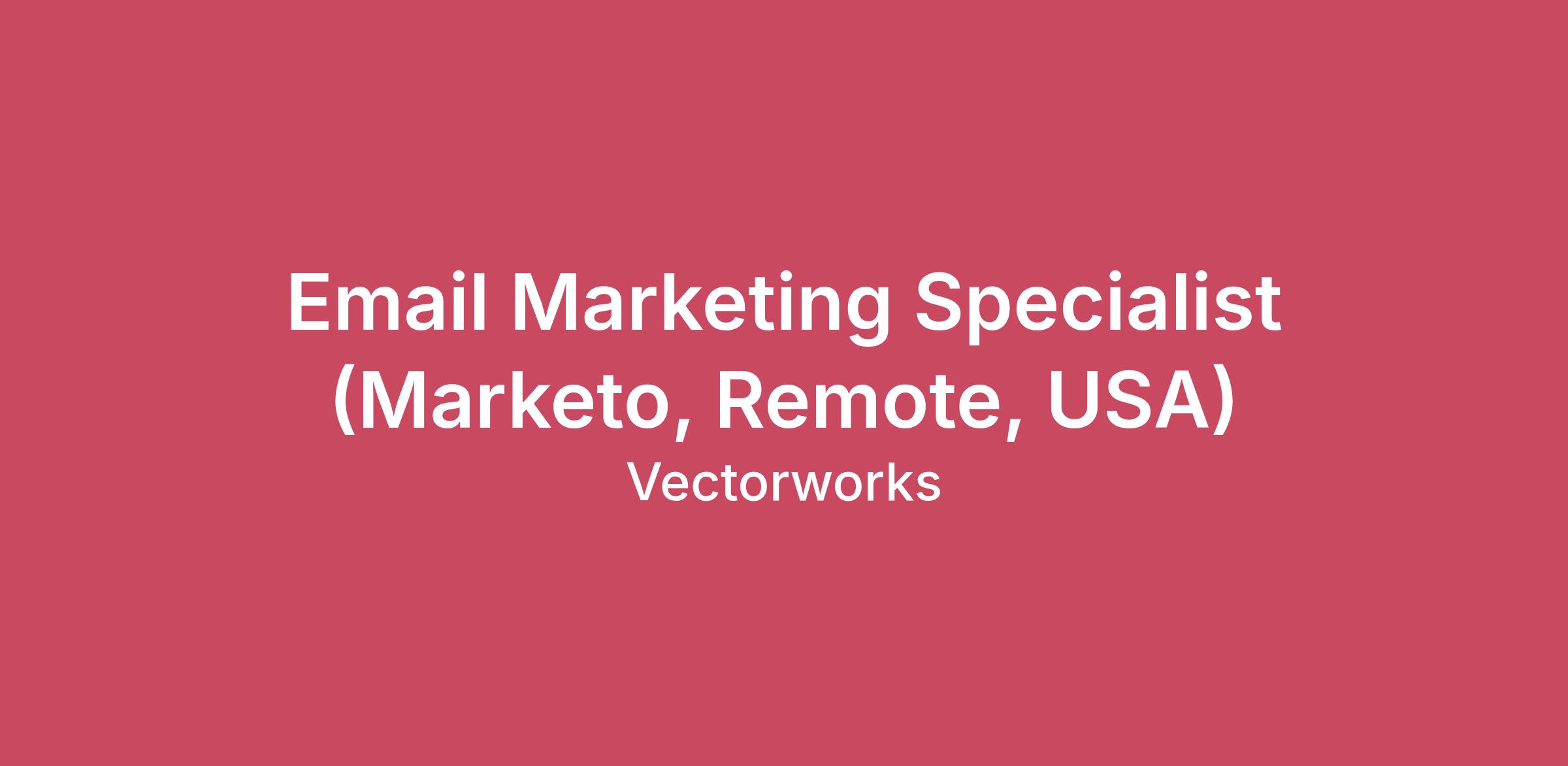 Are you the go-to expert in Marketo? Are you excited by the opportunity to own and elevate an entire email marketing function? Are you looking for a highly visible, business-critical role where your expertise fills a key gap and drives immediate impact?The Email Marketing Specialist will take ownership of building and optimizing email campaigns and automated workflows that directly influence demand generation and customer engagement. This role offers the opportunity to shape email strategy, elevate performance through testing and insights, and become the central expert in a critical marketing automation platform.This marketing team at Vectorworks drives inbound demand and customer engagement by delivering targeted, data-driven marketing campaigns that directly support business growth.During This Role You WillBuild, test, and deploy email campaigns and automated workflows in MarketoPartner with campaign stakeholders to align on segmentation, timing, and strategyAnalyze performance metrics and provide actionable recommendations for optimizationConduct A/B testing to improve subject lines, content, and send timingEnsure high-quality execution through rigorous QA and email calendar managementHere Is What Success Looks LikeProven hands-on expertise in Marketo, including workflow creation and campaign executionHigh attention to detail with consistent accuracy in a fast-paced environmentAbility to analyze campaign data and translate insights into measurable improvementsProactive communication and collaboration with cross-functional, remote teamsOrganized, adaptable, and continuously seeking ways to improve processes and performanceWho We AreVectorworks Inc. is a global design software company targeting entertainment, architecture and landscape industries with enterprising and intuitive solutions that allow users to design without limits.Our Core ValuesOur values define our fundamental beliefs as a company to guarantee that our employees and customers alike are celebrated for not just their abilities but who they are as individuals.Inclusion – Collaboration – Balance – InnovationClick here to learn more about how we live out our values.Check out our Glassdoor page to learn more about life at Vectorworks. Compensation:Annual compensation in the range of 70,000 – 85,000 USD. Eligible for company performance bonuses.Salary offer is determined by evaluation of candidate skills and experience during the interview process based on the criteria outlined in the job advertisement above.Benefits:15 days of Paid Time Off (PTO) per year. At 5 years of employment this goes up to 20 days of PTO.9 paid holidays and a holiday break for non-essential employees in December.5 days of Volunteer Time Off3 days of Summertime Leave3.5% employer 401(k) contribution matching4 weeks of paid Parental LeaveMedical, Dental, VisionShort/Long Term DisabilityPet InsuranceTuition Re-imbursement up to $5,250 per yearEmployee discount programs Vectorworks Inc. is an Equal Opportunity/Affirmative Action Employer NOTE: Women and minorities are less likely to apply to jobs if they do not feel they fit the job description in totality. Each individual has a unique combination of skills. If you do not check all the boxes, we still encourage you to apply. #Vectorworks#LI-MT1