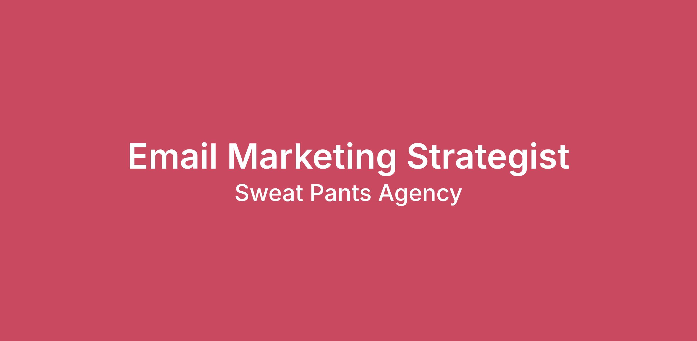 About Sweat Pants Agency:At Sweat Pants Agency, we are the only agency behind multiple INC #1 fastest-growing companies, including the INC #1 fastest-growing consumer product in 2020 and healthcare company in 2022. We are a results-driven team committed to driving exceptional growth for our clients through innovative and strategic marketing.Role Overview:We are looking for a passionate and experienced Email Marketing Strategist to join our dynamic team. As an Email Marketing Strategist, you will be responsible for developing and executing email marketing strategies that align with our clients' goals and drive measurable results. You will work closely with clients, copywriters, designers, and project managers to deliver creative and effective email campaigns.Key Responsibilities: Collaborate with clients to understand their goals and develop tailored email marketing strategies. Create and manage monthly email marketing plans and calendars. Analyze campaign performance data to identify opportunities for optimization and improvement. Work with copywriters and designers to ensure all campaigns align with brand voice and objectives. Develop segmentations, automation flows, and launch series to maximize engagement and conversions. Stay up-to-date with email marketing trends and tools to drive innovation in campaigns. Qualifications: Proven experience in email marketing strategy, preferably in an agency setting or as a freelancer. Strong understanding of email marketing platforms, with experience mainly in Klaviyo. Excellent communication skills, both written and verbal. Ability to analyze data and create detailed reports and presentations. Knowledge of email copywriting and design principles. Familiarity with tools like Notion and Slack. Core Values: Stay Curious: Always learning, testing, and improving. Stay Humble: Open to feedback and being a good teammate. Own It: Taking responsibility for problems, results, and processes. Be Transparent: Open and honest communication. Be Fearless: Thinking outside the box for big wins. Why Sweat Pants Agency?- Join a team that is behind two INC #1 fastest-growing brands.- Enjoy a collaborative and innovative work environment.- Be part of a remote-based team with top marketers from around the world.