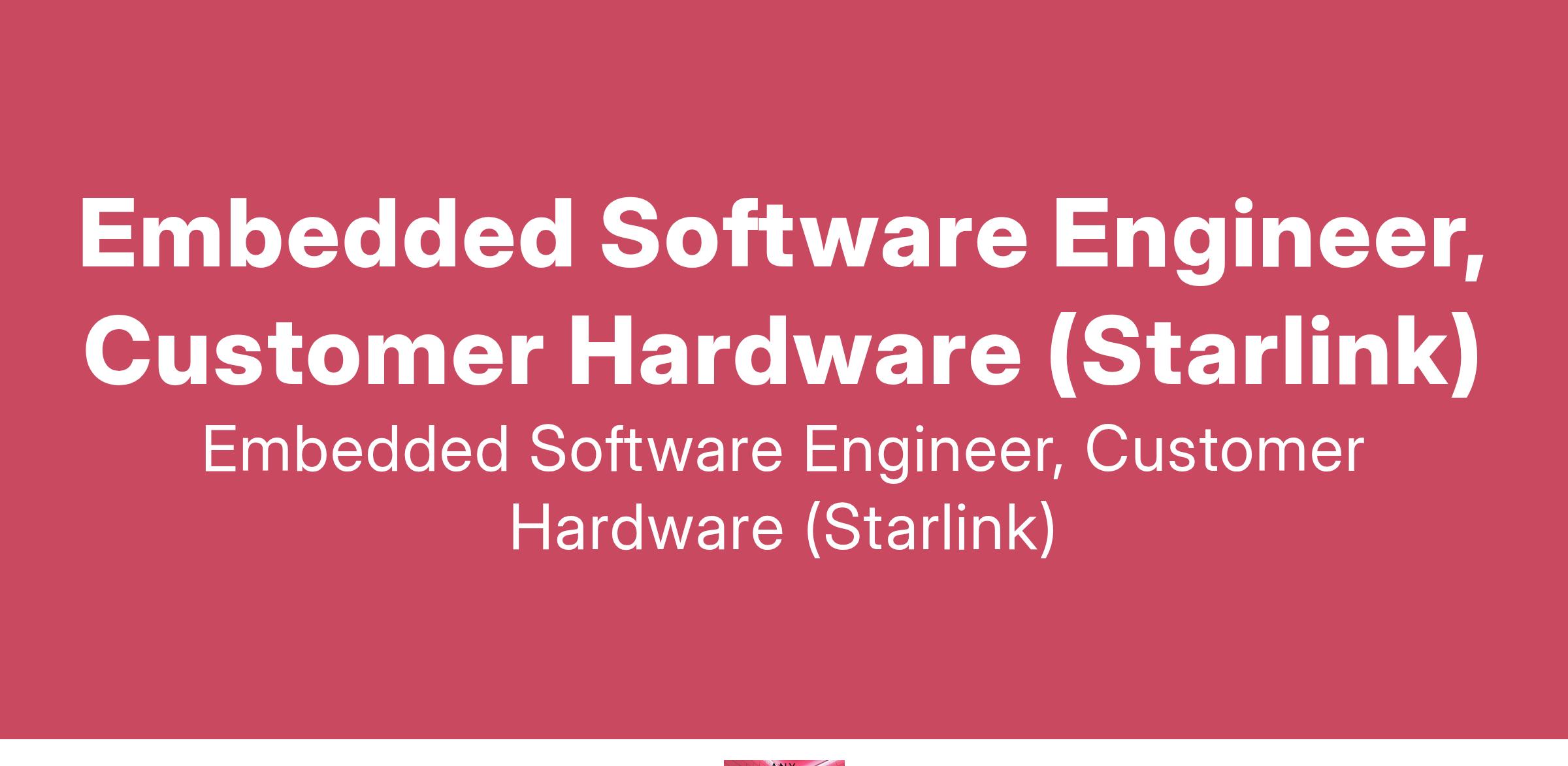 Embedded Software Engineer, Customer Hardware (Starlink)