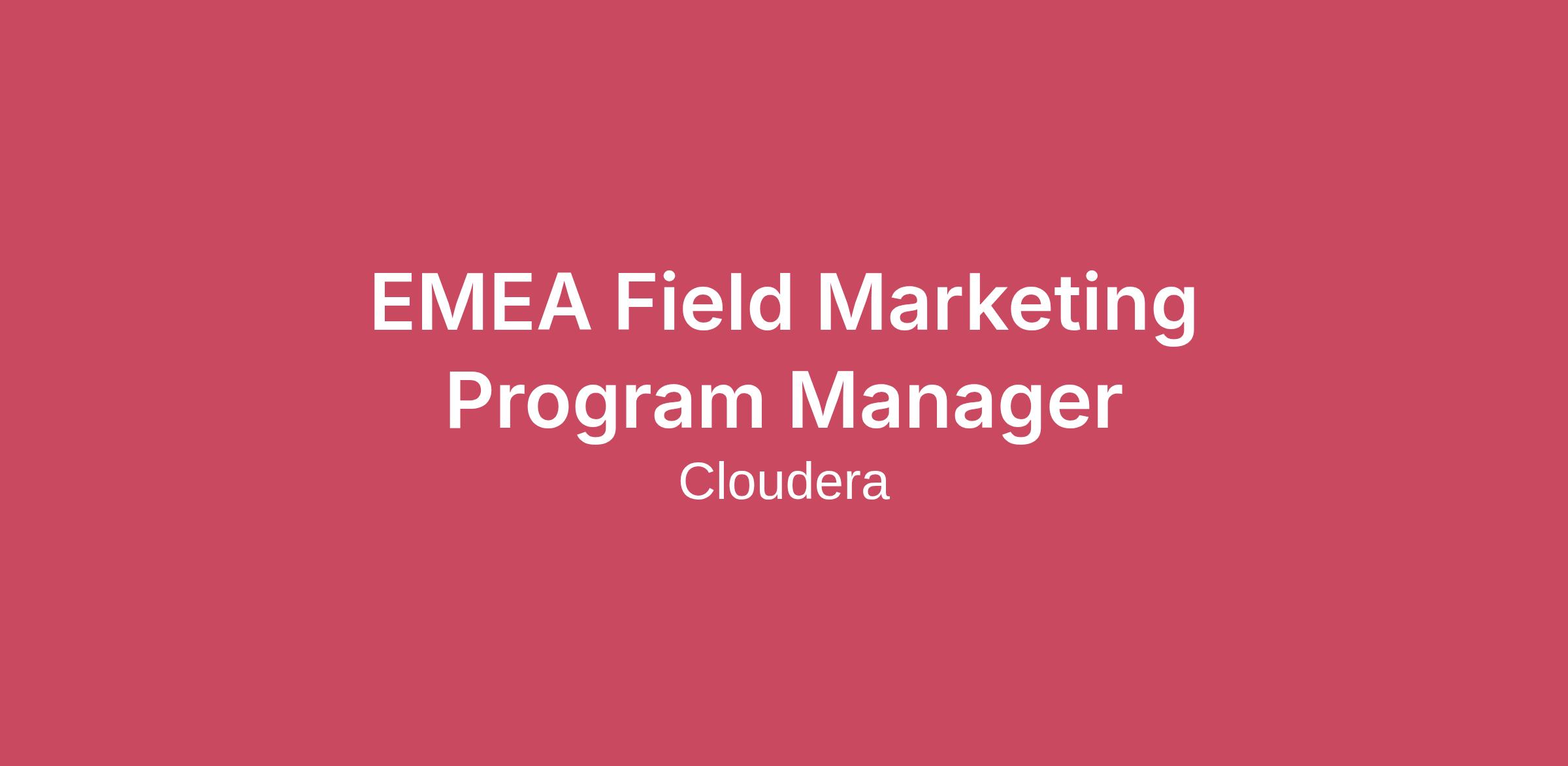Business Area: MarketingSeniority Level:Mid-Senior levelJob Description: At Cloudera, we empower people to transform complex data into clear and actionable insights. With as much data under management as the hyperscalers, we're the preferred data partner for the top companies in almost every industry. Powered by the relentless innovation of the open source community, Cloudera advances digital transformation for the world’s largest enterprises.As the Field Marketing Program Manager, you are the operational backbone of the EMEA Field Marketing team. This role partners closely with the EMEA sales teams and Regional Field Marketing Managers to deliver high-impact field programs, including events, campaigns, and account-based initiatives that support pipeline creation and progression. The ideal candidate is highly collaborative, detail-oriented, and looking to build a career in field marketingAs an EMEA Field Marketing Program Manager, you will...Drive Operational Excellence & Financial Stewardship: You will take ownership of the procurement engine to support the region. This includes managing the end-to-end lifecycle of Purchase Orders (POs) in Coupa, setting up vendors, processing invoices, and ensuring strict compliance. You handle the administrative framework so Regional Managers can focus on strategy.Support Regional Execution & Logistics: Act as a dedicated operational partner to the Regional Field Marketing Managers. You will oversee critical execution details for physical and digital events—such as venue coordination, shipping signage/booths, and managing attendee lists—ensuring flawless onsite execution.Ensure Data Hygiene & Reporting: Manage the "Lead-to-Opportunity" lifecycle by capturing, cleansing, and uploading leads to Salesforce. You will also track program metrics using Tableau and Salesforce, providing the data and insights the team needs to analyze campaign success.Facilitate Cross-Functional Collaboration: Serve as the connector between teams. You will coordinate with BDRs to ensure effective event follow-up, manage the team’s Master Calendar to align with the Go-To-Market plan, and handle internal newsletters to keep the broader organization informed.We are excited about you if you have:Experience: 1–3 years in a marketing coordinator, marketing assistant, or event operations role.The Toolkit: You are comfortable with (or eager to learn) Coupa (for finance), Google Workspace, Salesforce, Tableau, and Smartsheet.Operational Mindset: You are a master of organization and multitasking. You enjoy process management and have a sharp eye for detail in contracts and budgets.Communication: Excellent written and verbal English communication skills are required. Additional European languages are a plus.A "Can-Do" Attitude: You are a proactive, motivated team player who is always ready to jump in and solve problems for the team.Travel: Willingness to travel up to 10-20% to support onsite execution.Education: Bachelor's degree (marketing preferred) or equivalent.What you can expect from us:Generous PTO Policy Support work life balance with Unplugged DaysFlexible WFH Policy Mental & Physical Wellness programs Phone and Internet Reimbursement program Access to Continued Career Development Comprehensive Benefits and Competitive Packages Paid Volunteer TimeEmployee Resource GroupsEEO/VEVRAA#LI-AW1#LI-REMOTE