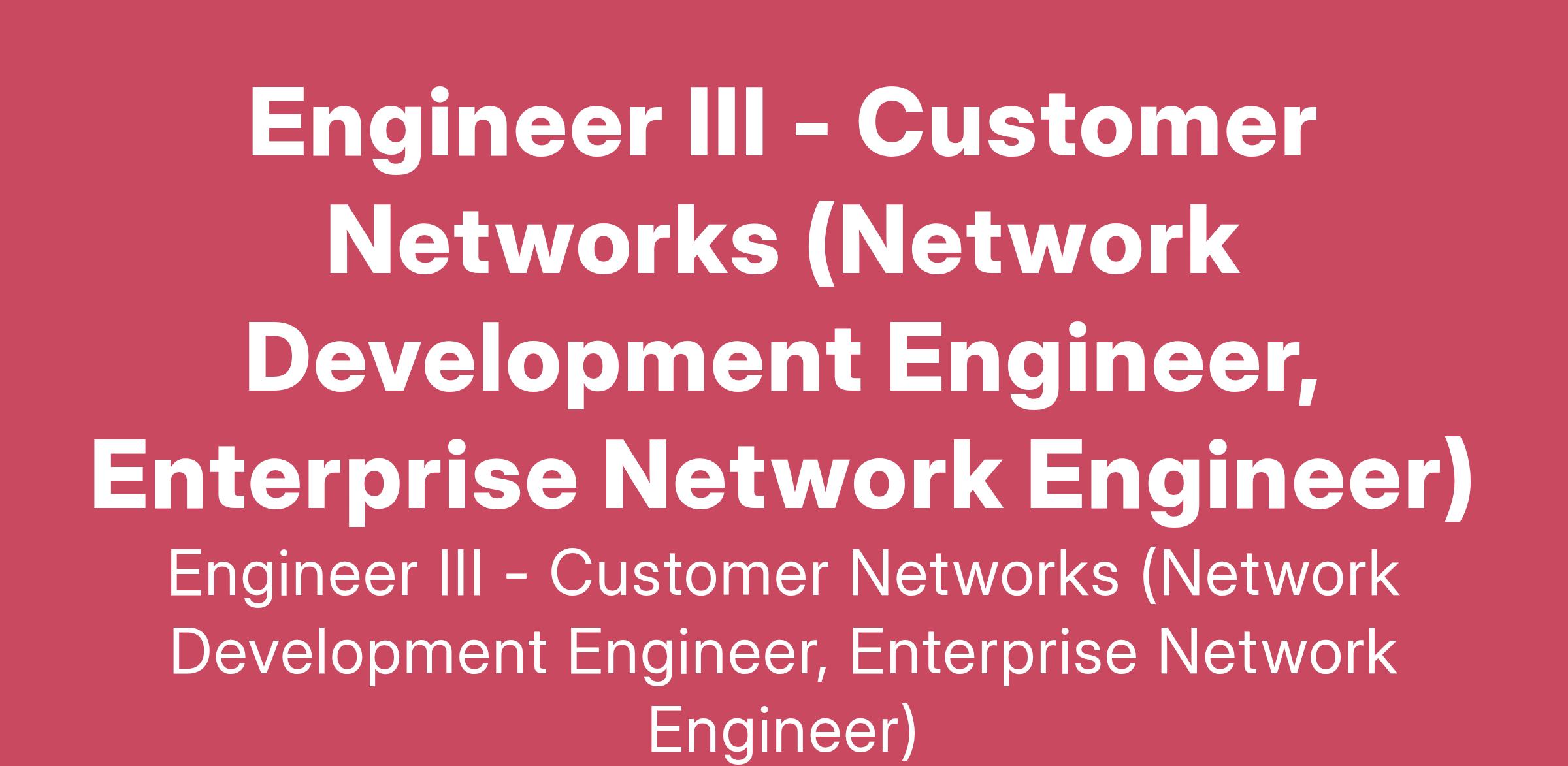 Engineer III - Customer Networks (Network Development Engineer, Enterprise Network Engineer)