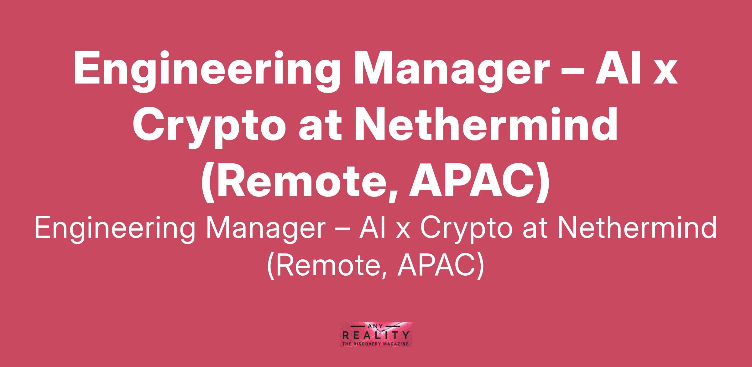 Engineering Manager – AI x Crypto at Nethermind (Remote, APAC)