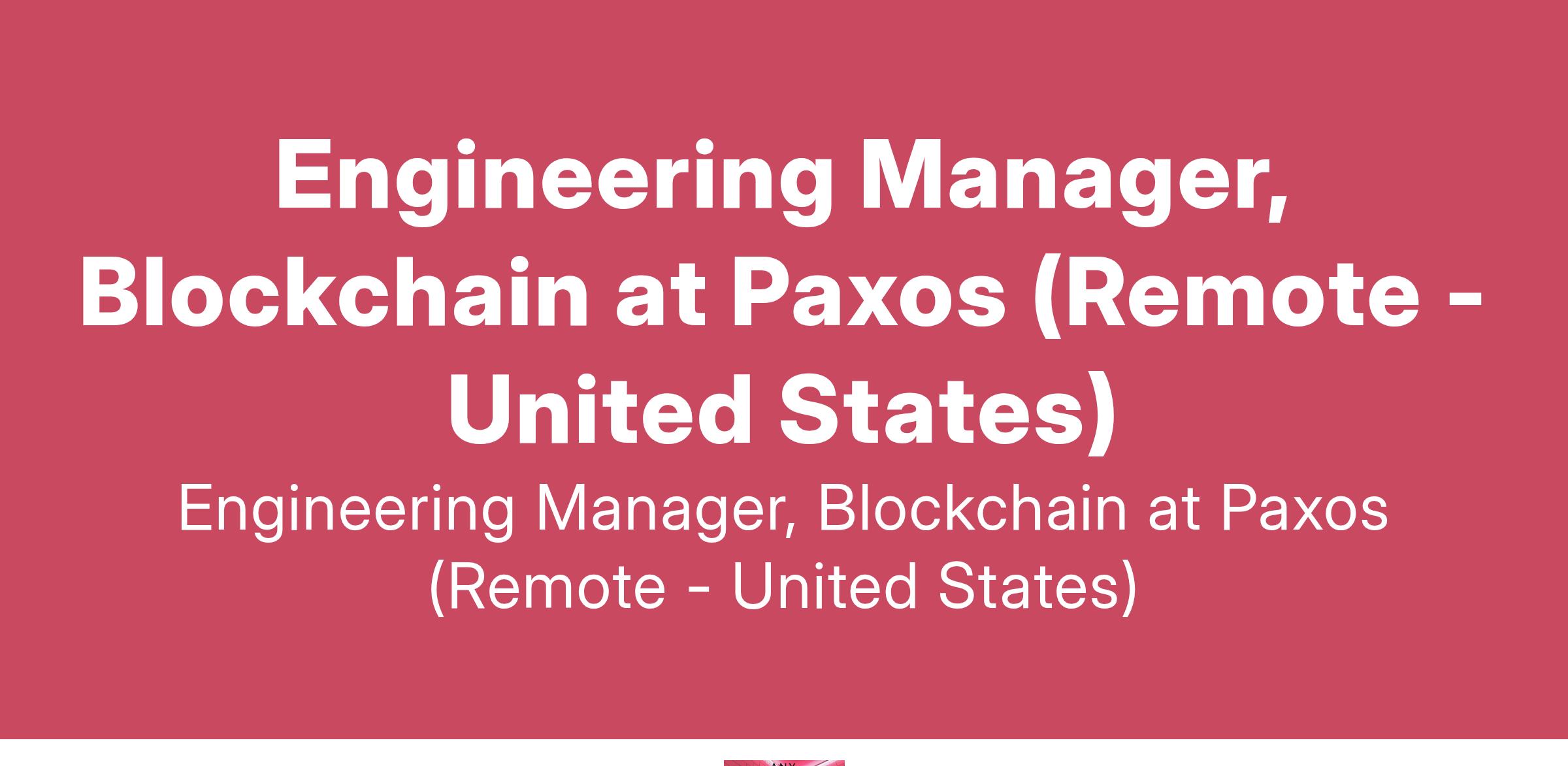 Engineering Manager, Blockchain at Paxos (Remote - United States)