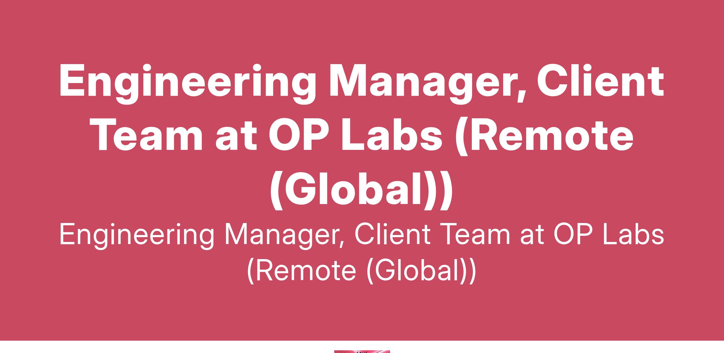 Engineering Manager, Client Team at OP Labs (Remote (Global))
