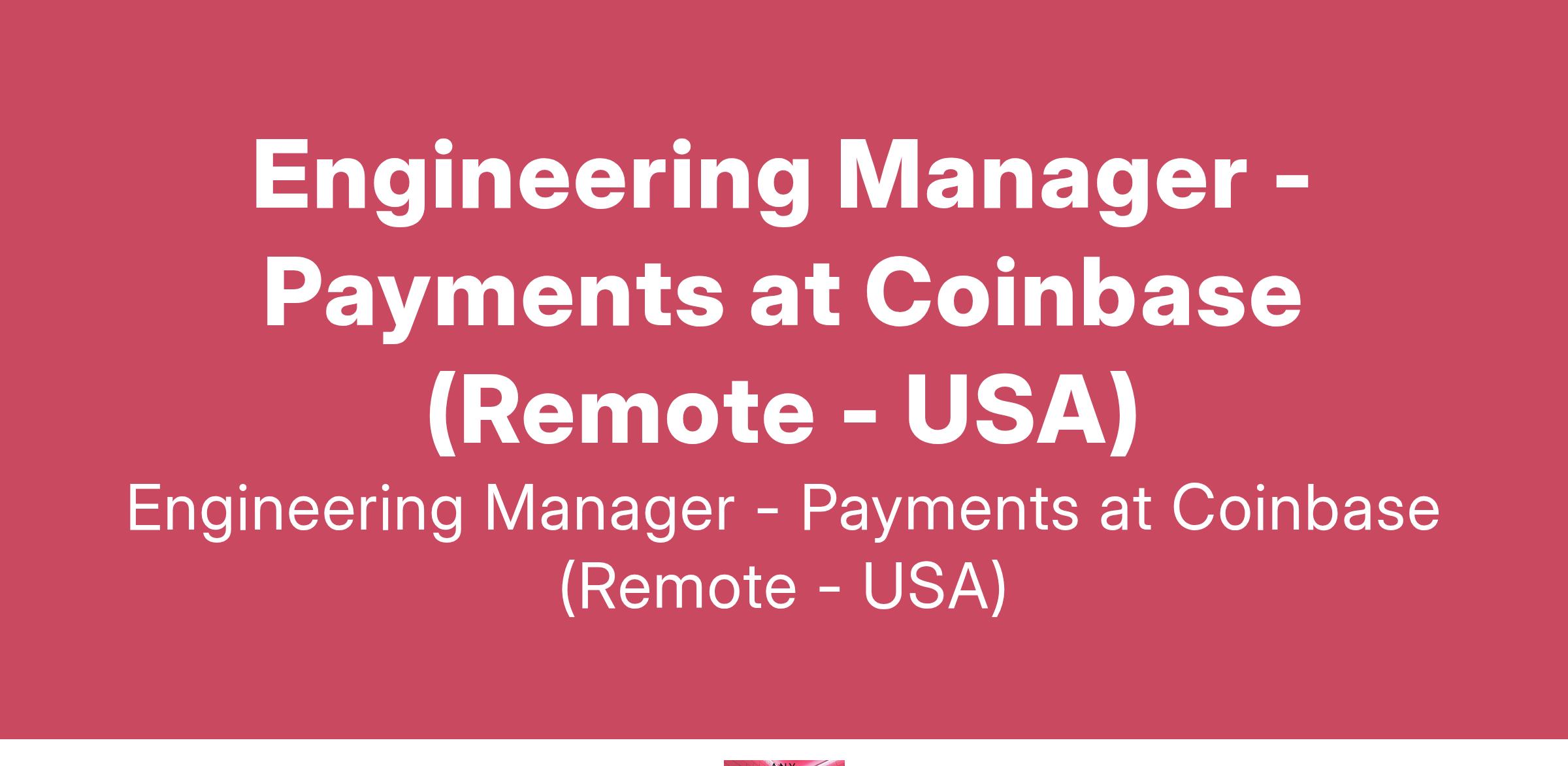 Engineering Manager - Payments at Coinbase (Remote - USA)