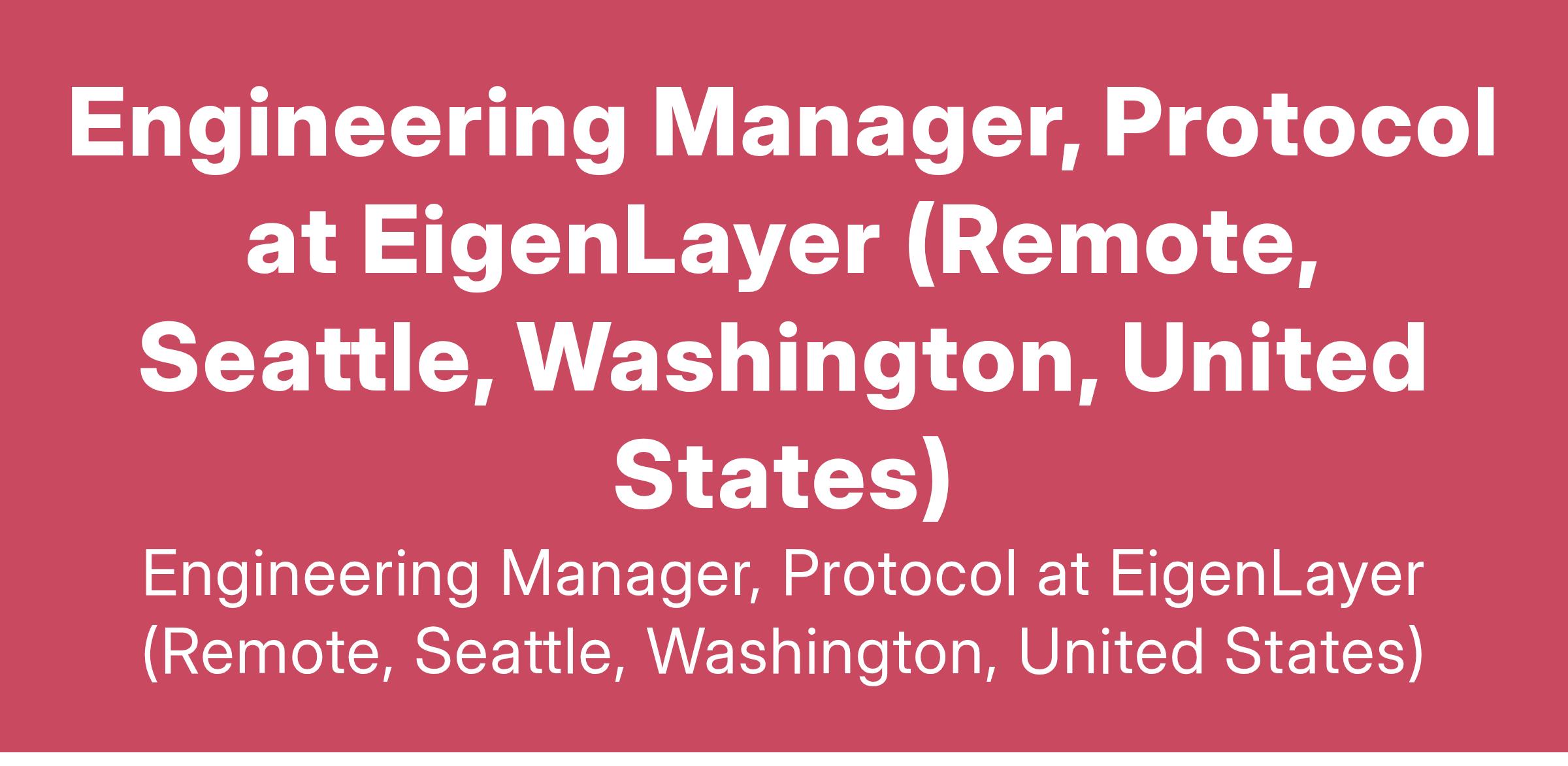 Engineering Manager, Protocol at EigenLayer (Remote, Seattle, Washington, United States)