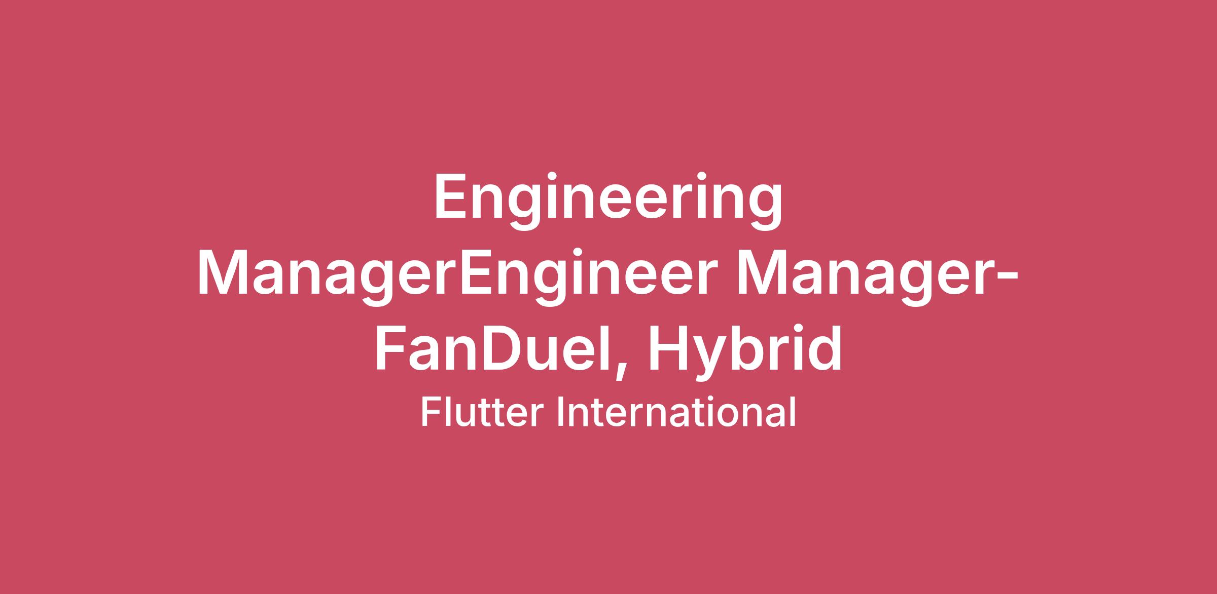 Engineering ManagerEngineer Manager- FanDuel, Hybrid