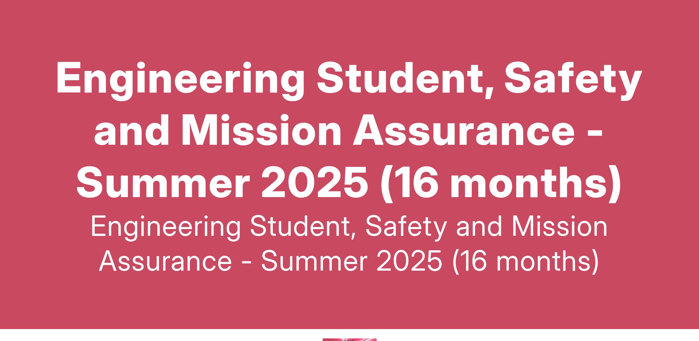 Engineering Student, Safety and Mission Assurance - Summer 2025 (16 months)