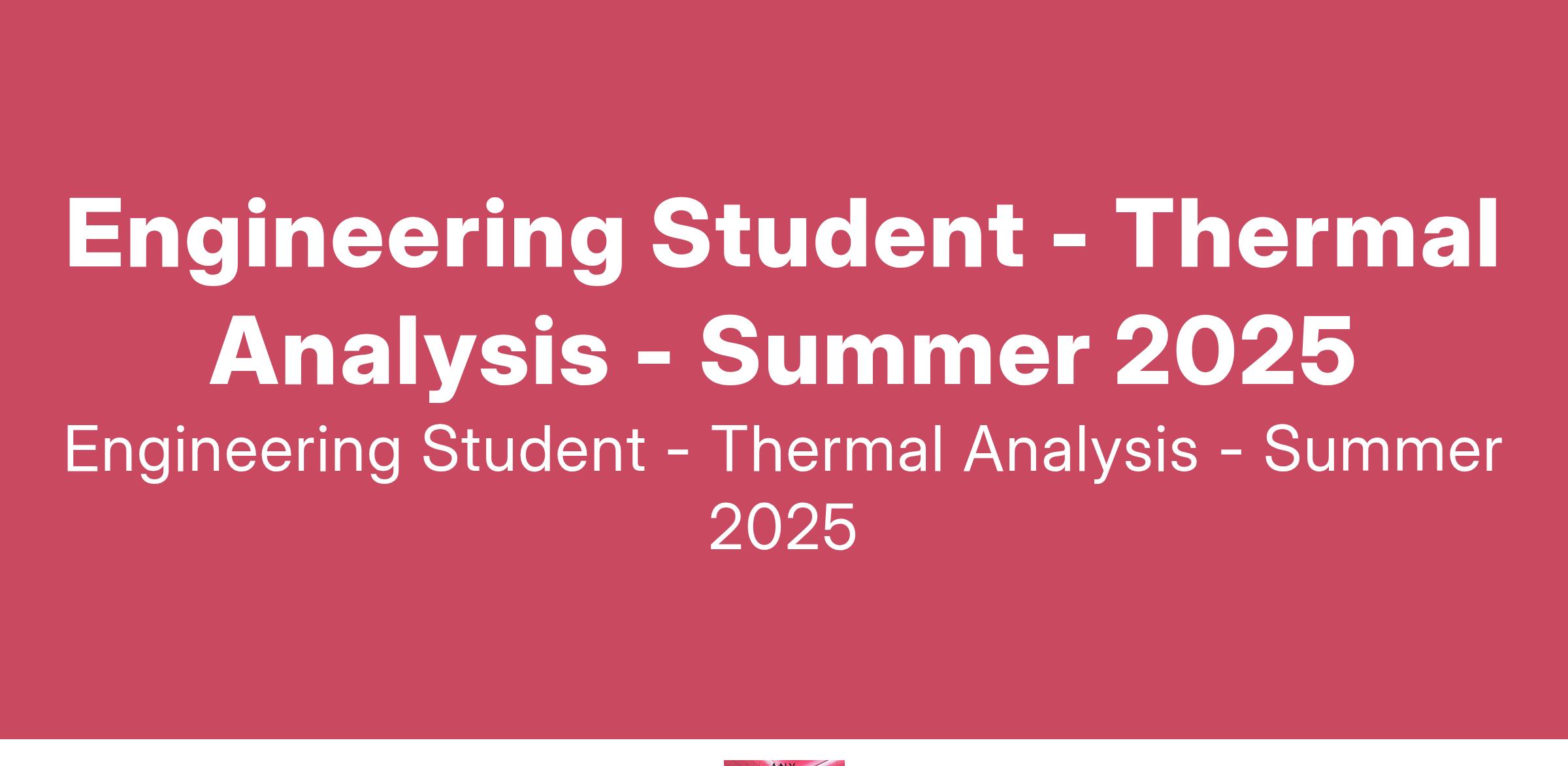 Engineering Student - Thermal Analysis - Summer 2025
