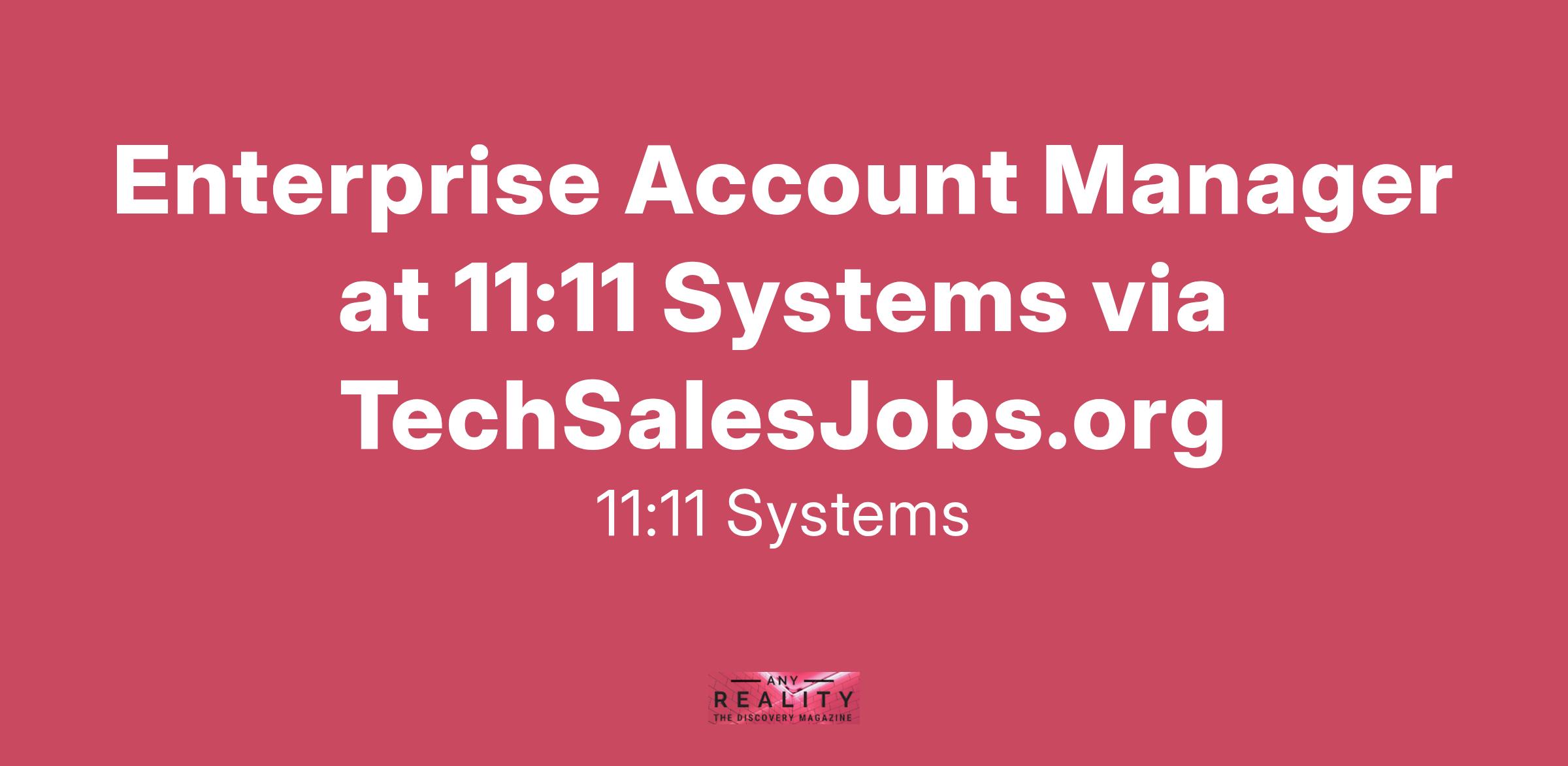 11:11 Solutions is experiencing tremendous global growth and is looking for a dynamic Enterprise Account Manager to manage a territory of existing enterprise-level customer accounts throughout the U.S. Preferred candidates will have at least seven years of past experience in account management of cloud hosting, IT Services, Managed Services, SaaS, or virtualization software.
