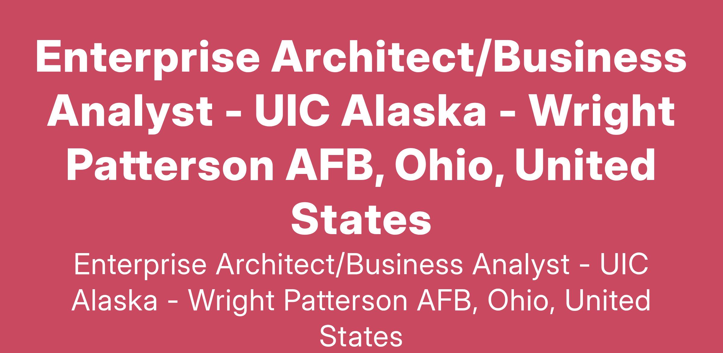 About this Contract: Bowhead provides Enterprise and System Architecture Support to the US Air Force Life Cycle Management Center at Gunter Annex in Montgomery, Alabama. Work site is Wright-Patterson AFB, OH. The AFLCMC/GBE Enterprise Architecture Services Group encompass the following disciplines within architecture: application or solution architecture, data architecture, and architecture maintenance.