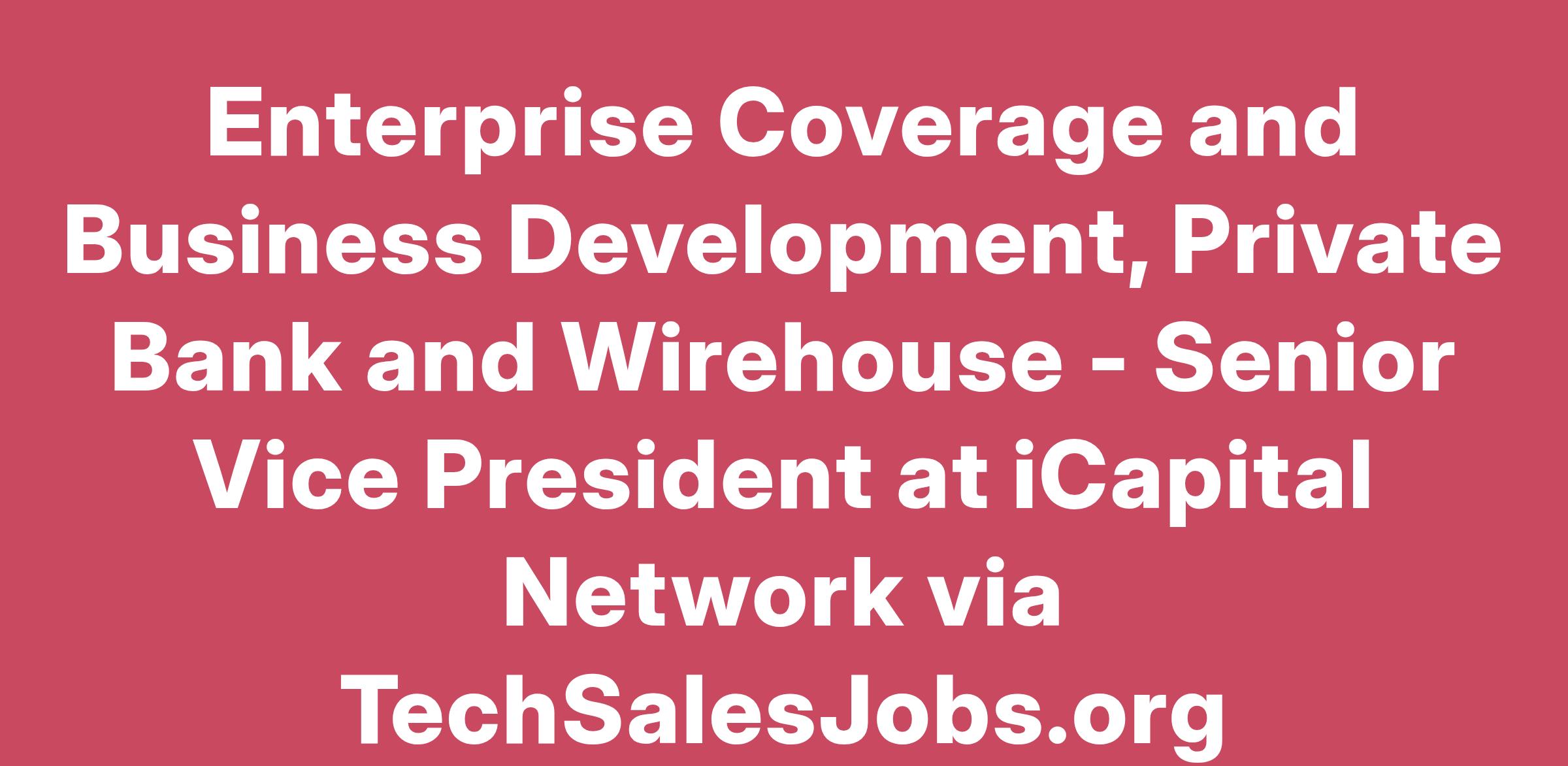 iCapital is seeking a highly motivated, outgoing, and experienced Enterprise Coverage and Business Development professional to join the Relationship Management team, focusing on developing iCapital’s enterprise presence with our largest Private Bank and Wirehouse clients. This role plays a key part in managing relationships with these clients as well as driving new business initiatives and delivering innovative products and solutions. This individual will contribute significantly to managing senior relationship touchpoints and lead the development of our GTM strategy across business lines.