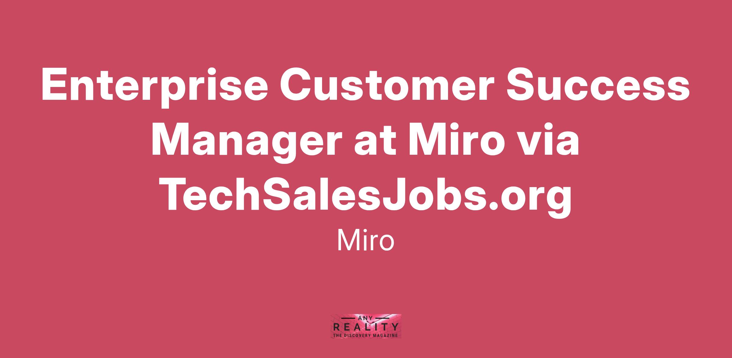 Miro is growing its Customer Success organization, and we are looking for customer-centric individuals! An Enterprise Customer Success Manager has many responsibilities - from crafting a rollout plan to establishing key relationships with both new and existing customers to co-creating a narrative around the value achieved with Miro.