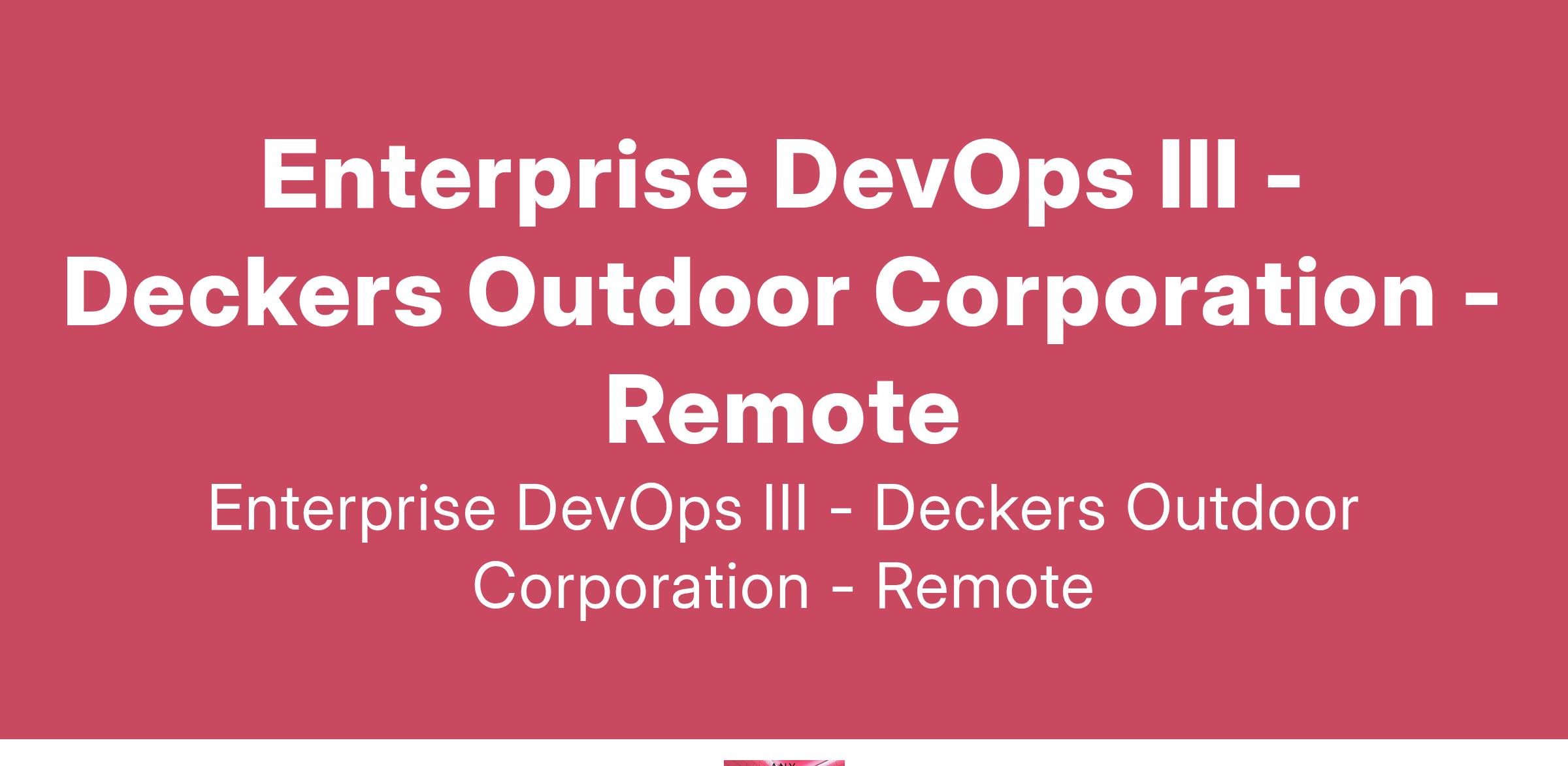Job Title: Enterprise DevOps III