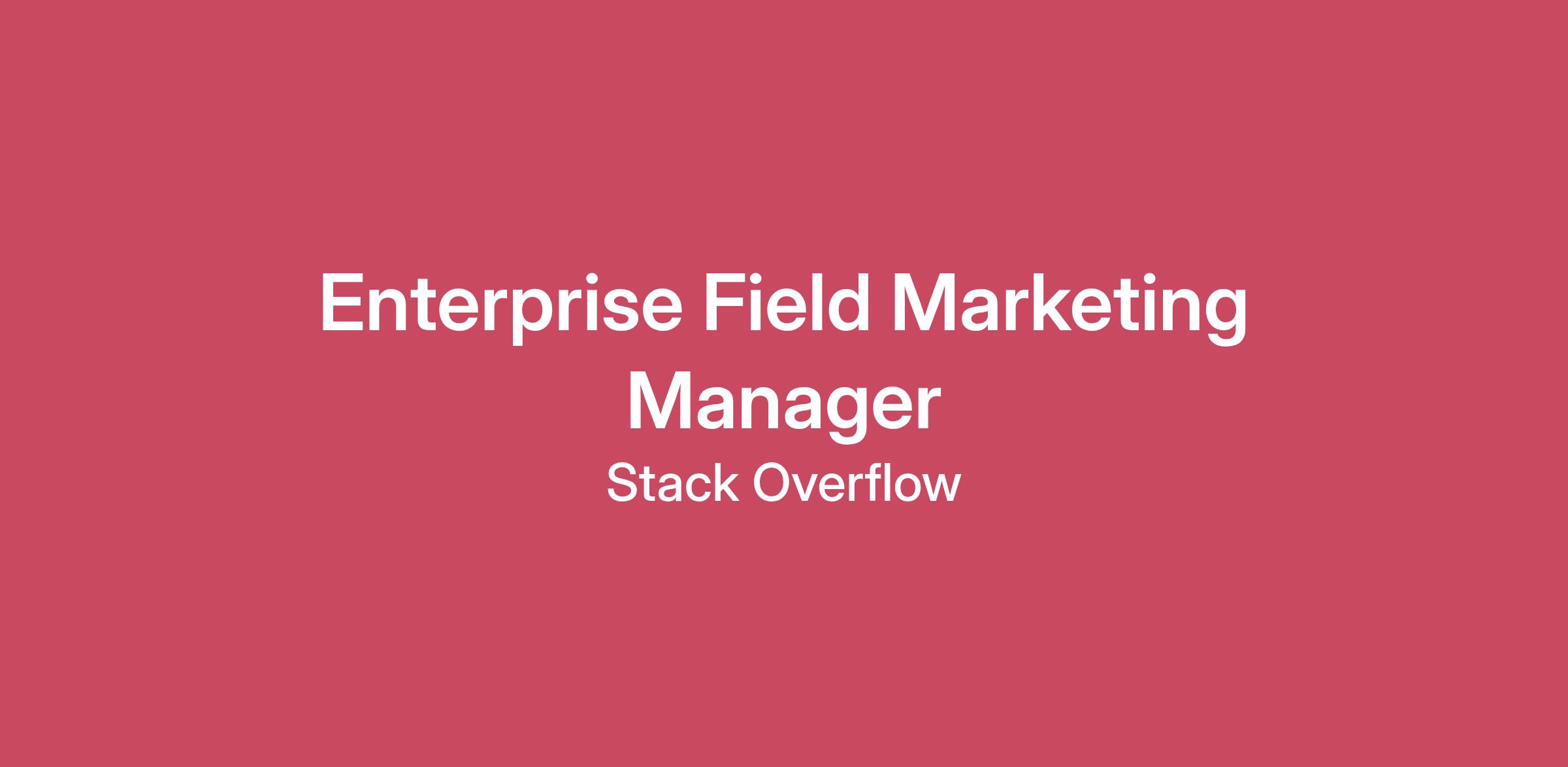 Every developer has a tab open on Stack Overflow. We are one of the most popular websites in the world - a community-based space focused on increasing productivity, decreasing cycle times, accelerating time to market, and protecting institutional knowledge. Innovation is at the heart of everything we do. We embrace collaboration, transparency, and believe in leading with empathy; creating an environment where every Stacker knows they belong. We embrace that the unique contributions and points of view of all Stackers contribute to our success. We are a Best Company to Work For, in addition to being recognized for Best Company Leadership, Best Company Happiness, Best Company Perks and Benefits, Best Company Work-Life Balance, Best Company Compensation, and Best Company Outlook. We are a remote-first company with Hiring HUBs based in the US, Canada, UK, and Germany.About you: We are looking for an Enterprise Field Marketing Manager with robust experience planning and organizing field events for companies in the enterprise tech sector. This role will require you to have a strong understanding of how to connect and engage with senior tech leaders in large enterprise organizations as well as how to create memorable experiences that drive demand for our products and services. You are results oriented and should have a thorough understanding of Field Marketing’s critical role in driving pipeline and revenue growth and feel comfortable measuring and reporting on pipeline contribution, ROI, and performance insights. You also have strong interpersonal skills for building strong working relationships with our partners in Sales and can act as both a strategic business partner and trusted subject matter expert. What you’ll do: Full ownership of our field marketing strategy Lead the planning and execution of field marketing activities for our enterprise SaaS product, Stack Internal. This includes: White glove experiences, such as executive leadership retreats, round table dinners, and networking mixers Sponsored events and tradeshows Virtual webinars, roundtables, and AMAs Manage the operational and logistical aspects of events including project plans, budget management, data analysis, and vendor management Act as a strategic business partner and trusted subject matter expert for stakeholders in Sales Lead cross-functional working teams with stakeholders in Sales and Marketing to execute on event plans What we expect to see: 8+ years of B2B marketing experience 5+ years of field marketing experience selling tech into enterprise organizations Deep experience in executive-level engagement Experience establishing an annual event strategy that ties directly to business objectives Strong analytical capabilities with experience reporting pipeline contribution, ROI, and performance insights Proven experience in project management and leading cross-functional working teams Strong interpersonal skills as well as written and oral communication skills. Ability and willingness to travel across the U.S., and occasionally Europe, for event coordination and support The base salary for this role will be up to $120k base + annual bonus and benefits. #LI-KS1 #LI-Remote What you’ll get in return: Competitive Base Salary Generous paid vacation Generous parental leave (16 weeks at 100% pay), family care leave, and unlimited sick days Equity for all employees at all levels Industry-leading health benefits that are applicable per country of residence for all our full-time employees Company-paid Life Insurance Home Internet stipend Professional allocation for your growth and development One-time allowance to assist with your home office setup Company-paid access to Calm, Bravely, LinkedIn Learning, MyAcademy and Overdrive Stack Overflow is proud to be an equal opportunity workplace. We value diversity, inclusion, equity and belonging and these pillars are at the heart of how we work together here at Stack. All qualified applicants will receive consideration for employment without regard to race, color, religion, sex, sexual orientation, gender identity, national origin, or any other applicable legally protected characteristics in the location in which the candidate is applying. For individuals based in California, and other locations where required, we will consider employment qualified applicants with arrest and conviction records.