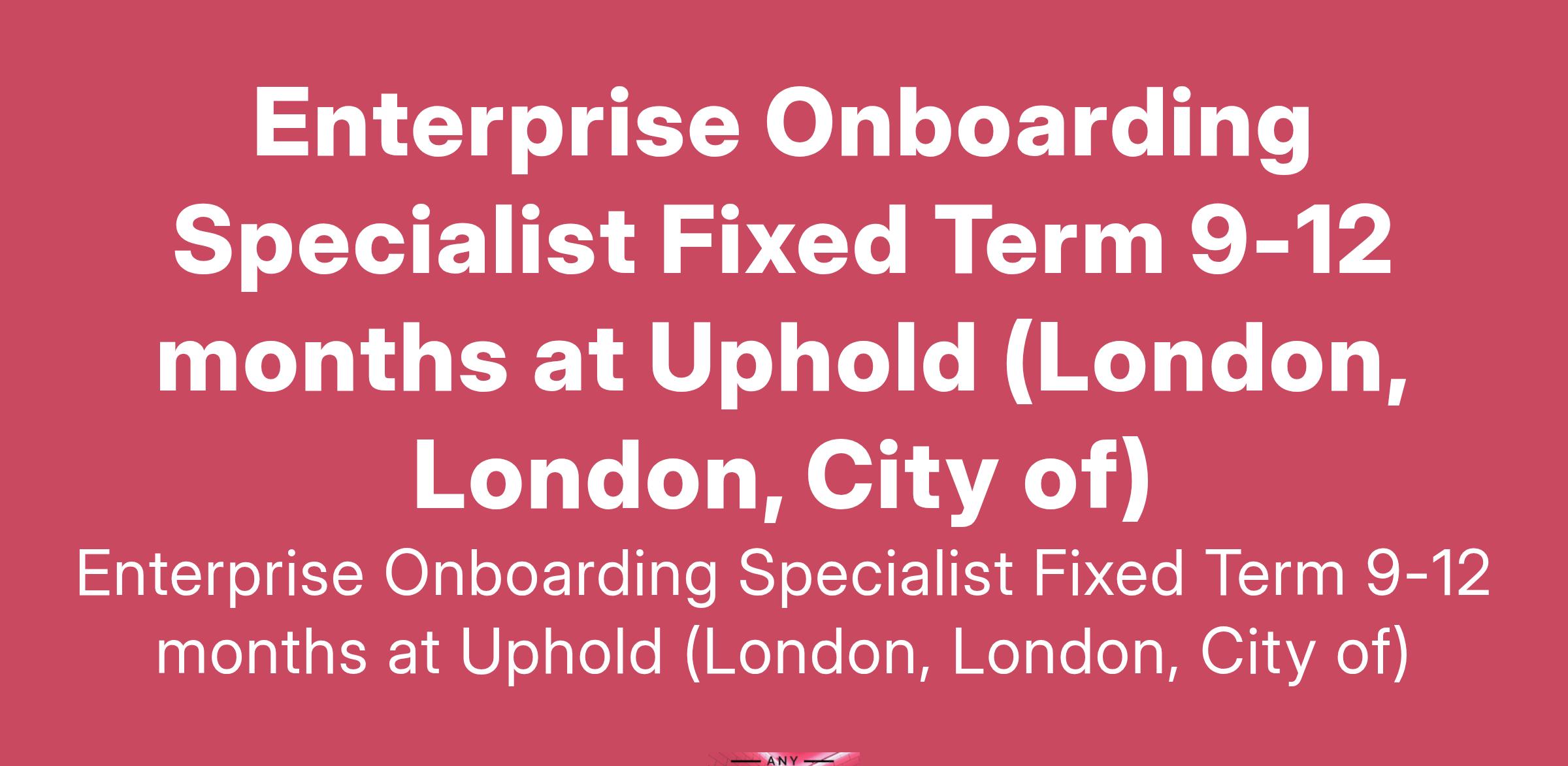 Enterprise Onboarding Specialist Fixed Term 9-12 months at Uphold (London, London, City of)