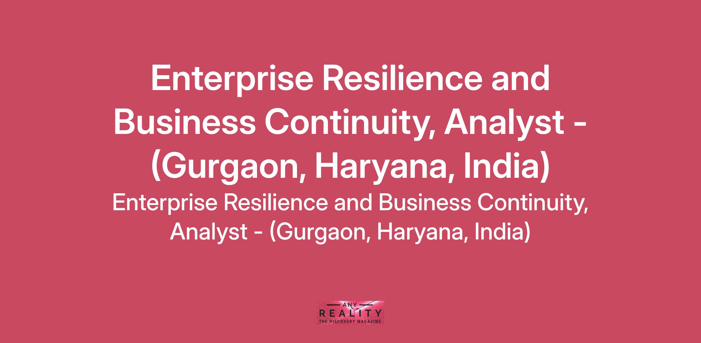 The role will collaborate with the Enterprise Resilience team lead for India with dotted line collaboration with the deputy global head of Resilience. The role will be based in Gurgaon.
