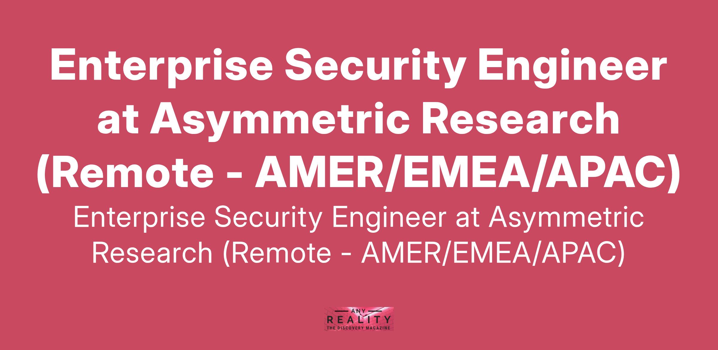 Enterprise Security Engineer at Asymmetric Research (Remote - AMER/EMEA/APAC)