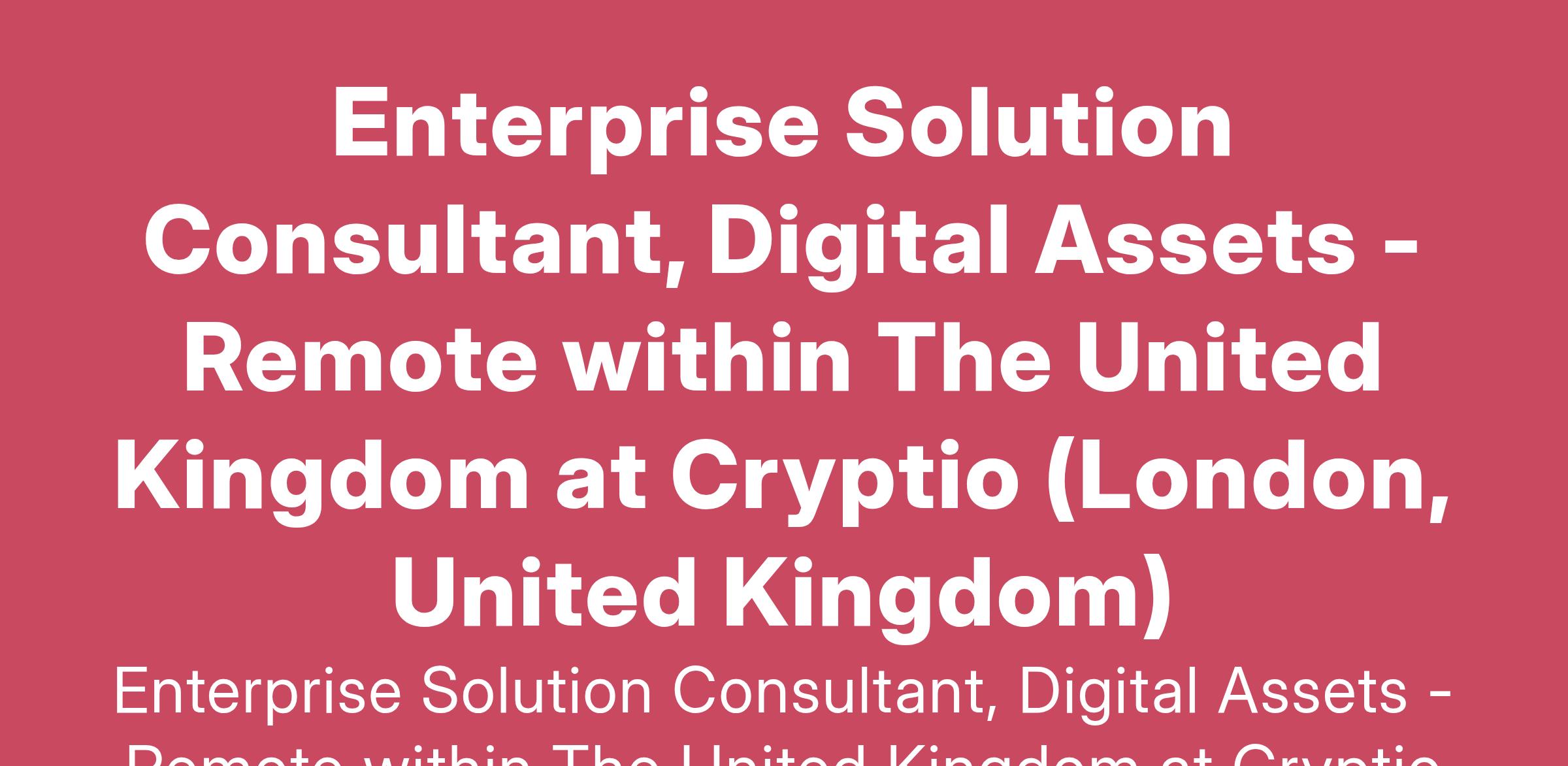 Enterprise Solution Consultant, Digital Assets - Remote within The United Kingdom at Cryptio (London, United Kingdom)