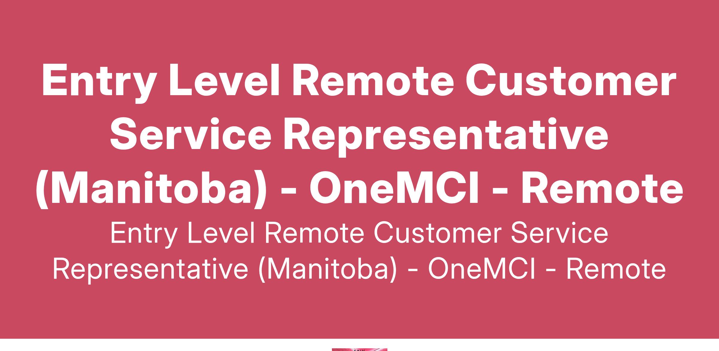 Entry Level Remote Customer Service Representative (Manitoba) - OneMCI - Remote