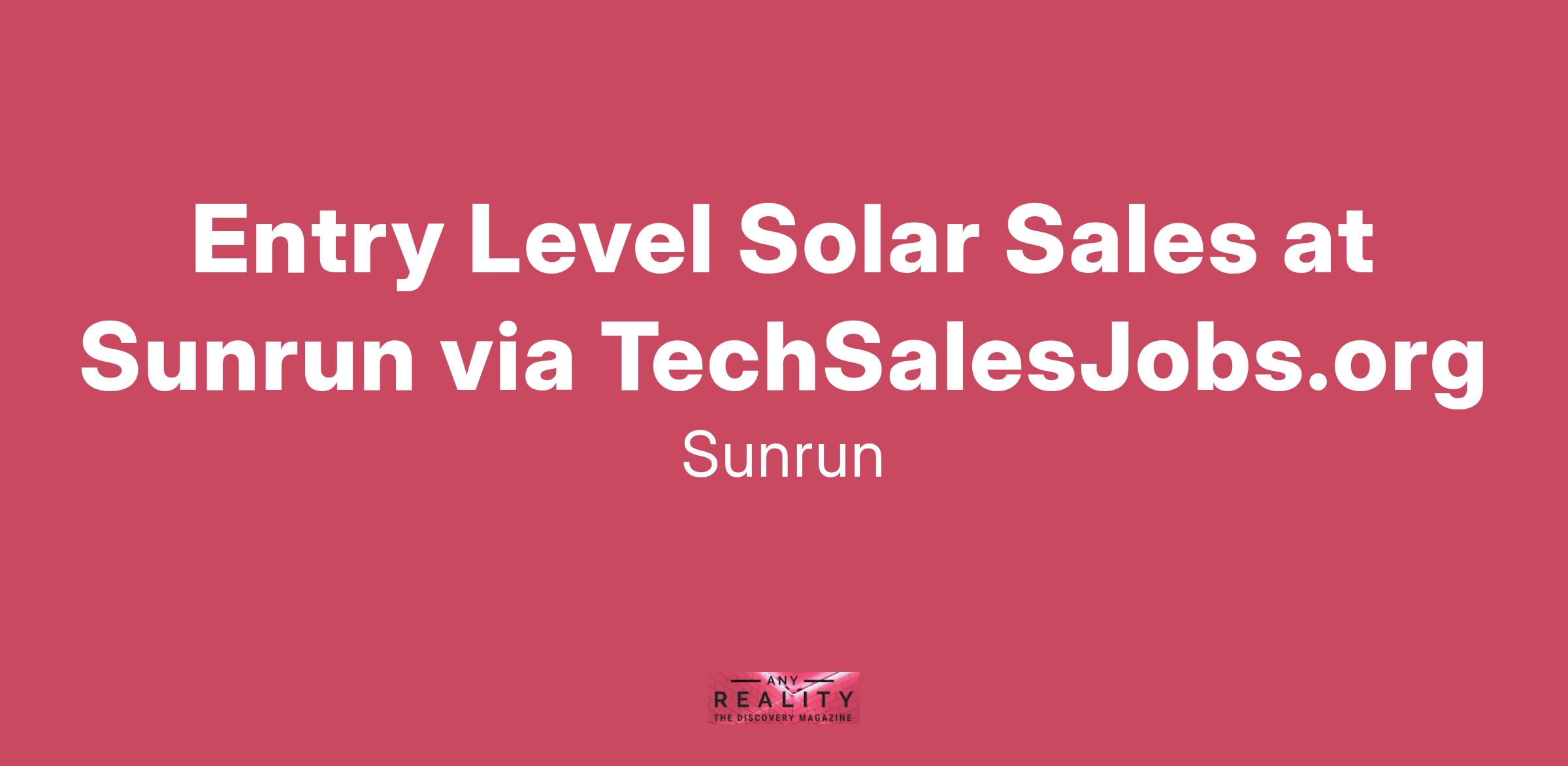 Entry Level Solar Sales at Sunrun via TechSalesJobs.org