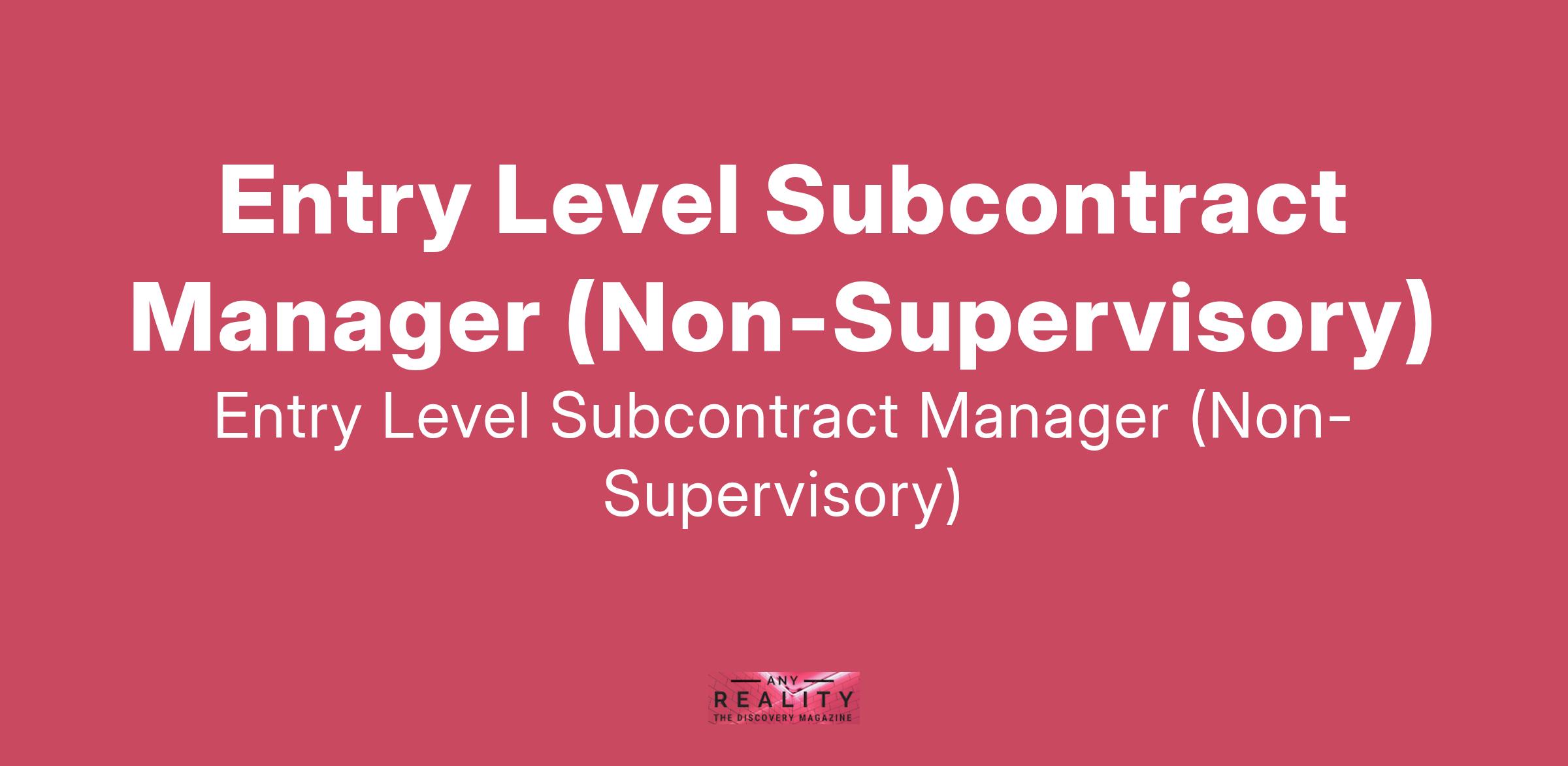 Entry Level Subcontract Manager (Non-Supervisory)